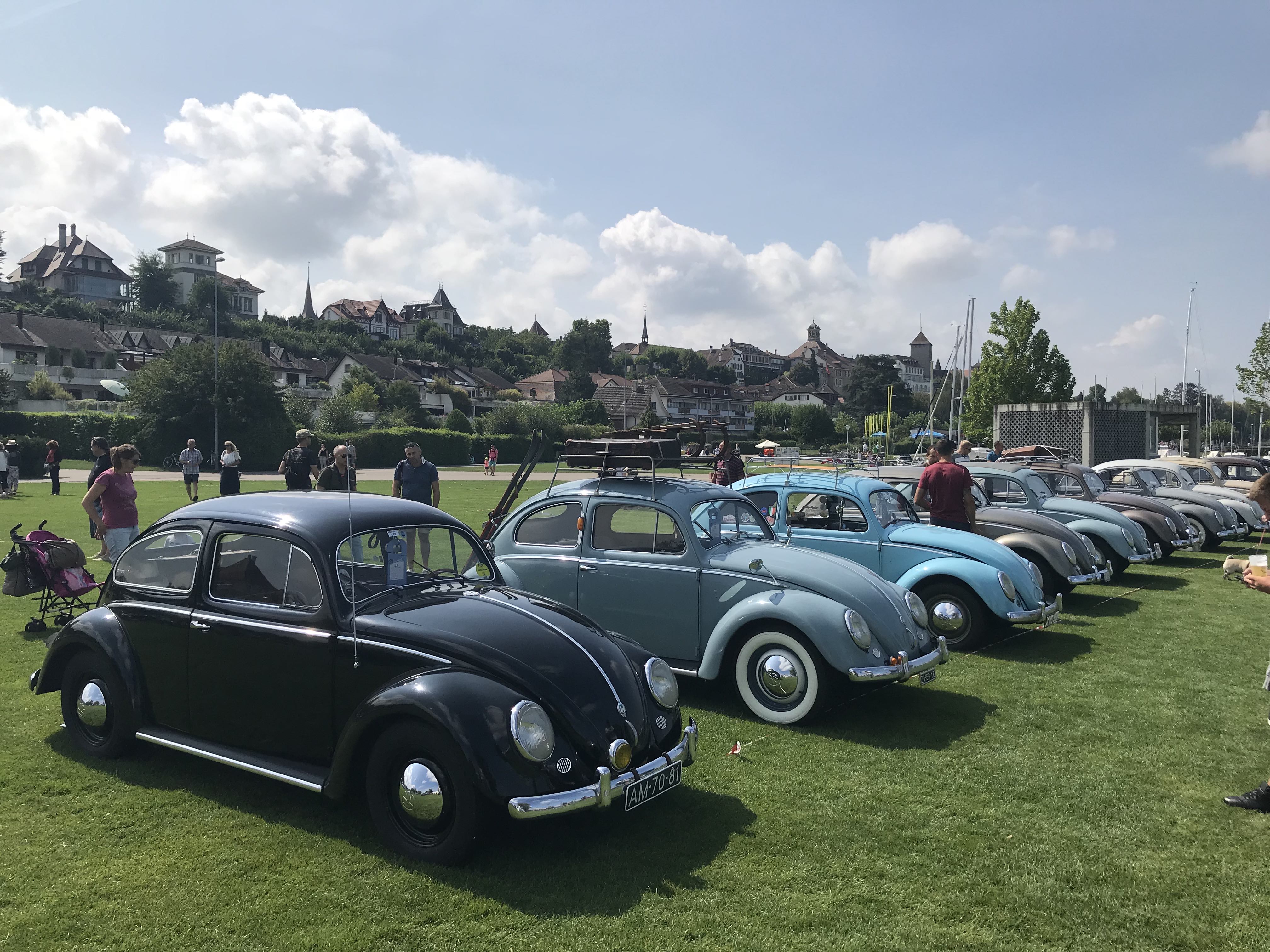 Seit Freitag, bis heute Sonntag, dem 19. August, findet in Murten auf der Pantschau das 2. Internationale Vintage-VW-Meeting statt. Rund 130 Aussteller präsentieren ihre restaurierten, schicken Oldtimer.