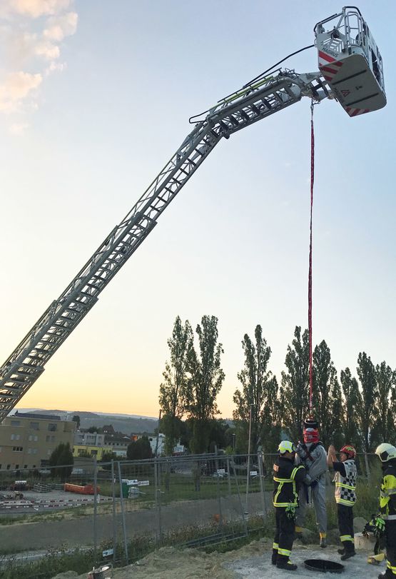 Da Baustellen Risiken Bergen, welche zu Arbeitsunfällen führen können, hat die Feuerwehr gestern, am Montag, dem 20. August, gleich einen Rettungseinsatz auf ihrem neuen Platz geübt.
