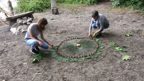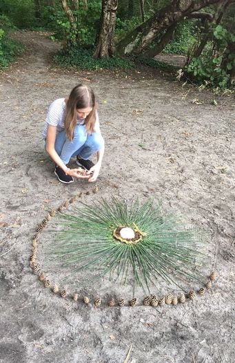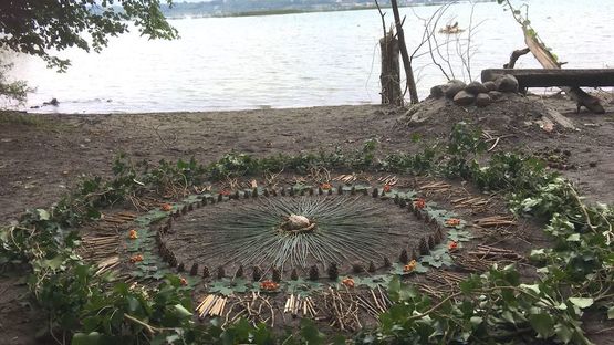 Steintürme und -schnecken, schwimmende Blätterschlangen und Fabelwesen aus Stein, Moos, Lehm und anderen Naturmaterialien. Landart braucht weder künstliche Hilfsmittel noch aussergewöhnliche Fähigkeiten. Die Werke werden mit blossen Händen aus Materialen gestaltet, die die Natur für uns bereithält. So steht es in der Ausschreibung der Kunsttherapeutin und Geschäftsleiterin Nicole Viviane Chuard, des Ateliers Mala in Murten. Für Landart braucht es eigentlich keinen Kurs – man kann einfach selber mit Naturmaterialien experimentieren. Aber mit den Ideen und Anregungen von Nicole kommt man viel schneller in den Flow, der einem die Zeit vergessen lässt. Beatrice aus Schnottwil wollte ihrem Patenkind Naemi ein besonderes Erlebnis schenken. Es beginnt mit ein paar Übungen um die Natur mit allen Sinnen wahrzunehmen und Naturkunstmale zu entdecken. Ich versichere Ihnen, es gibt ganz viele im Greng! Schnell war klar, dass ein gemeinsames Mandala gelegt werden soll. Die Natur bietet eine Fülle an Material und zuerst ging‘s mal ans Sammeln. Etwas Rundes sollte es werden und Hand-in-Hand wurde gelegt, geprüft, verbessert. Am Schluss war das Mandala so gross, dass es eigentlich eine Drohne mit Kamera gebraucht hätte für eine schöne Aufnahme. Und was wird daraus? Vielleicht hat jemand weitergemacht, es ist zerstört worden oder die Wellen des Sees haben es geholt? Wozu dann das Ganze? Eine schöne Erinnerung und herrliche zwei Stunden fast in einer andern Welt. Keine lauschige Gartenecke zu Hause? Die Natur schenkt sie jedes Mal neu – man muss nur selber Hand anlegen.