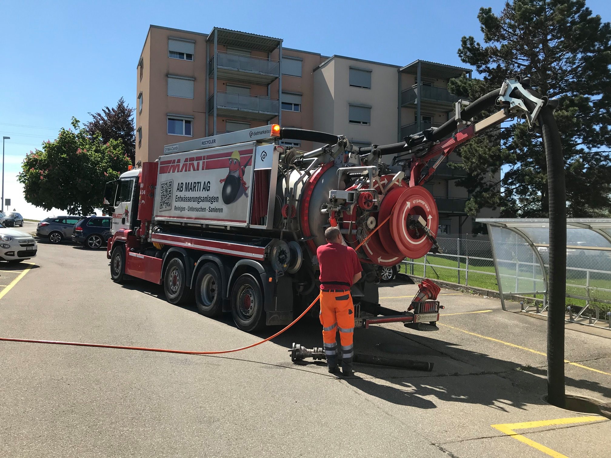 Nur einen Tag später geht bei der Feuerwehr Region Murten die Meldung über einen Fahrzeugbrand in der deutschen Kirchgasse ein. Nun muss es schnell gehen, denn die Hausmauern sind auf beiden Seiten des Brandes nicht weit entfernt. Die Einsatzkräfte reagierten schnell und bekämpften das Feuer mit einer Druckleitung.