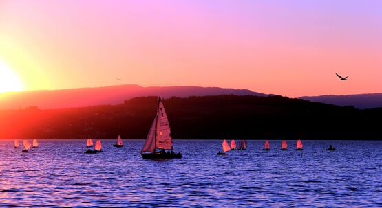 Morgenstimmungen mit mehr und weniger Wolken, eine Gewitterstimmung, Segelschule in der Abendsonne und Action auf dem Murtensee. Alle Aufnahmen habe ich im Sommer 2019 gemacht. Ich hoffe, dass es bald wieder farbige Bilder über und auf dem See zu sehen gibt!