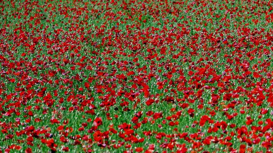 Auch die Mohnfelder blühen in voller Pracht. Die Aufnahmen der Felder entstanden am 17. Mai 2020 bei Avenches.