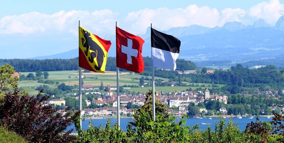 Die Kirschen bei Mur auf dem Mont Vully sind bald reif und süss und die Bise bringt Bewegung in die Fahnen bei Lugnorre. Die Aufnahmen habe ich am Mittwoch, 27. Mai 2020 gemacht.