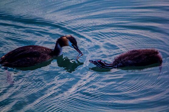 Ein paar Bilder aus dem Leben der Haubentaucher. Die Familie habe ich dieses Jahr über ein paar Wochen mehrmals auf dem Murtensee vom Strand oder dem Boot aus beobachtet und fotografiert. Wusste gar nicht, dass sie so gute Fischer und Fischliebhaber sind...