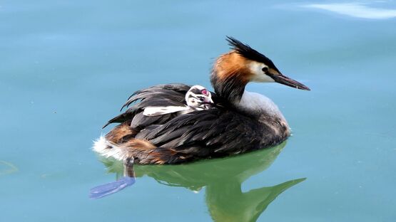Haubentaucher-Familie auf dem Murtensee