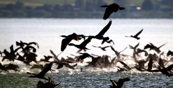 Kormorane auf dem Murten- und Neuenburgersee