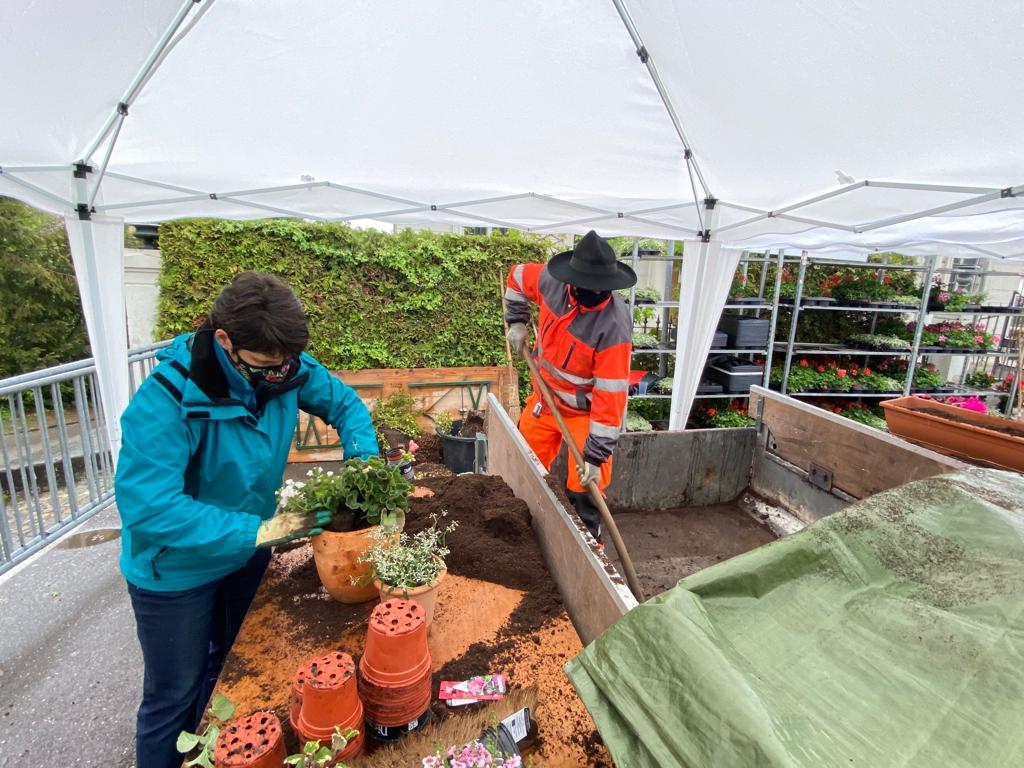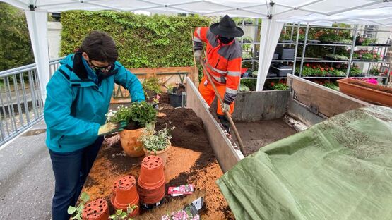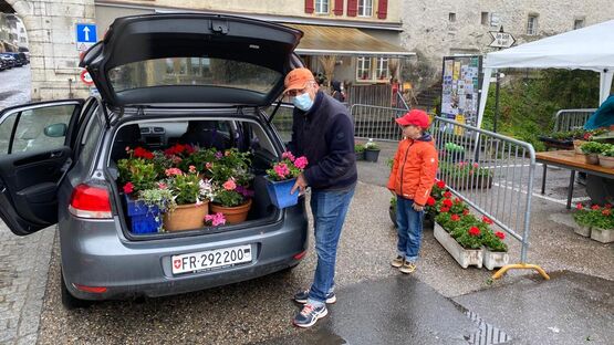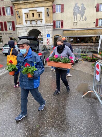 "Die Laufkundschaft, die jeweils spontan noch etwas kauft, war dieses Jahr jedoch schon etwas spärlicher", fügte Sandra Berger dann noch hinzu. Dennoch durfte sie mit ihrem eingespielten Team etwa tausend Pflanzen für ihre Kundinnen und Kunden eintopfen, wie sie grob abschätzte. Wie üblich steuerte die Stadt Murten dazu den Humus bei, der dann auch kostenlos abgegeben wurde. Und für all jene, die kein Auto haben, konnte sogar in einem beschränkten Umkreis ein gratis Heimlieferservice beansprucht werden.