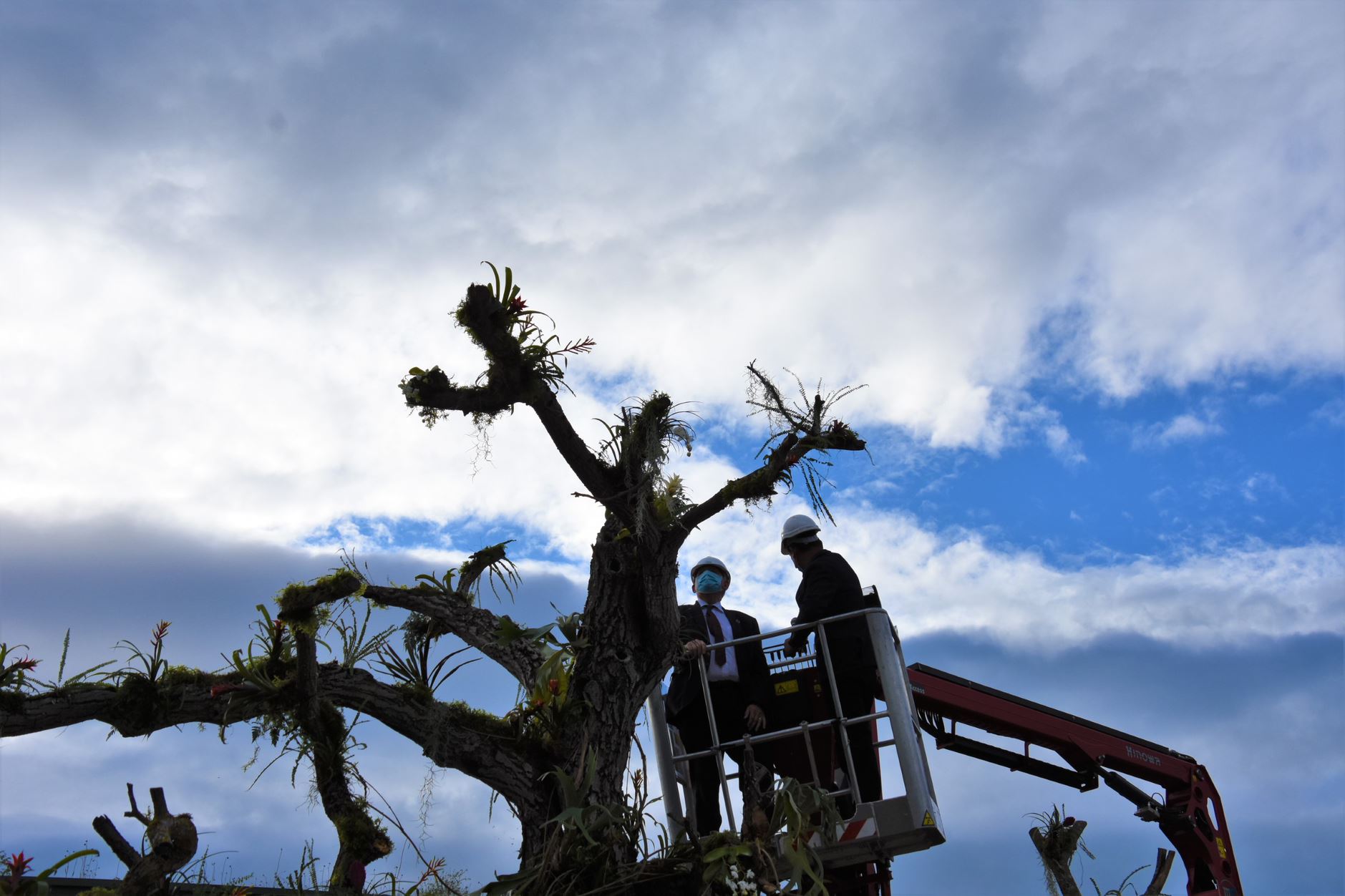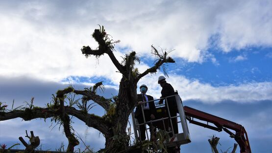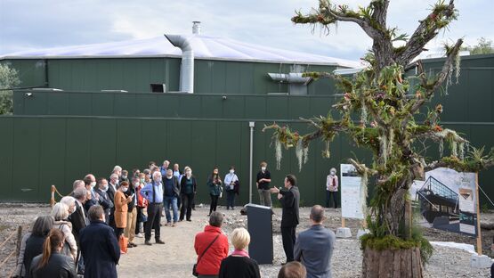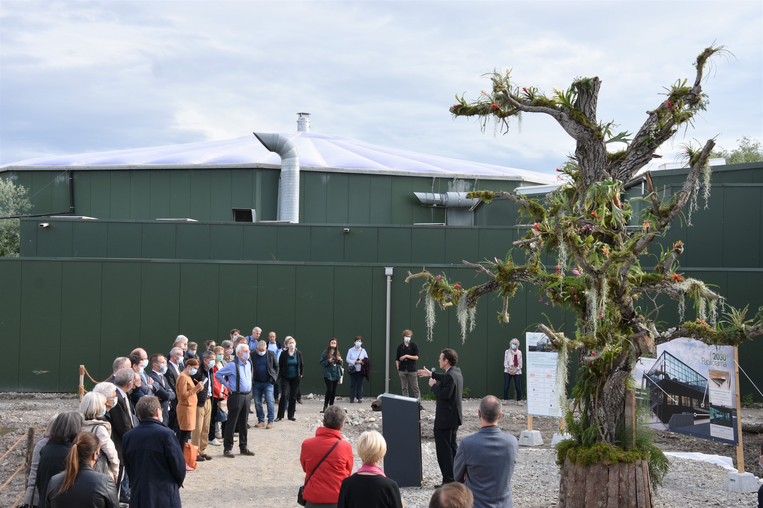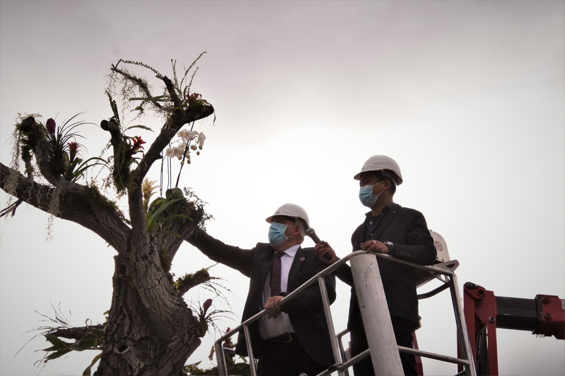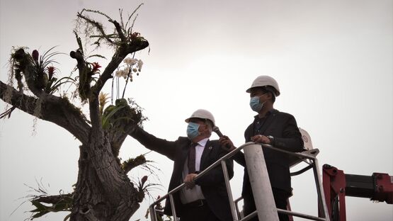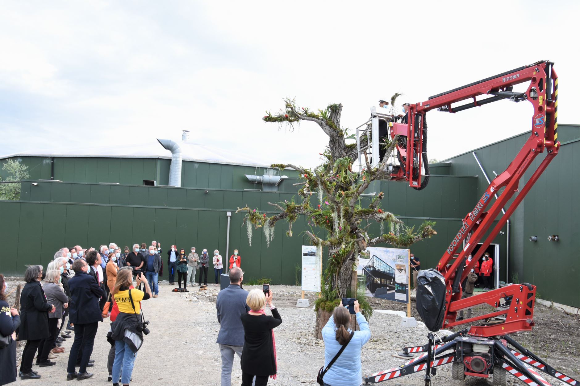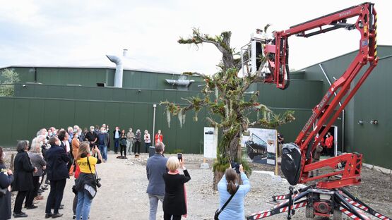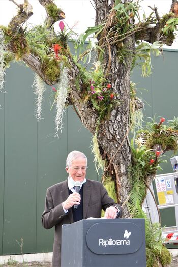 1 / 5BildergalerieMit dem symbolischen Setzen einer Orchidee auf die Spitze eines Baumes voller Tropenpflanzen kündigte Hans Stöckli, Präsident des Fördervereins ProPapiliorama, offiziell den Baubeginn für die erste Etappe des Projekts Papiliorama 2030+ an. -