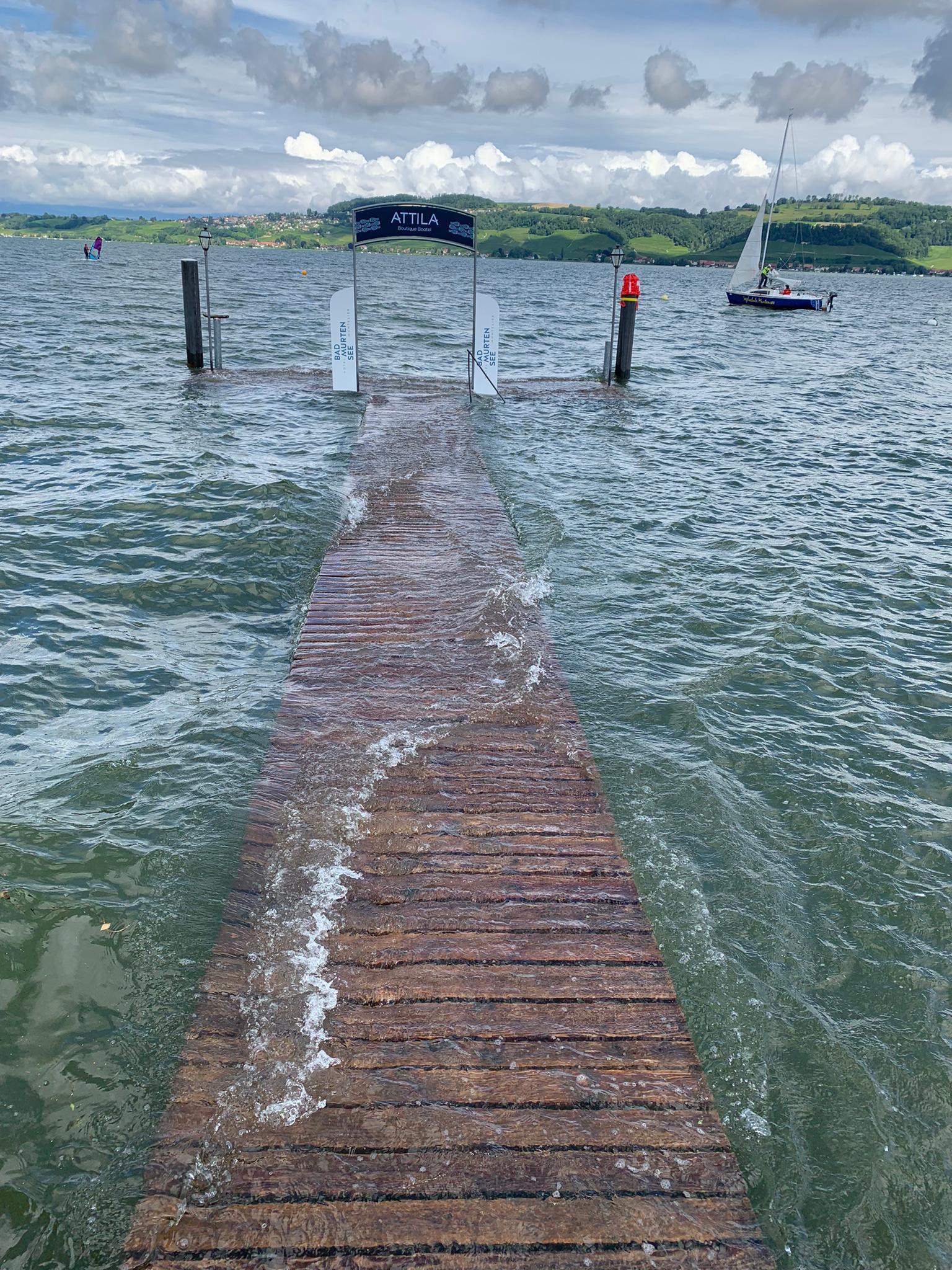Die Pantschau sowie der Bootshafen am Murtner Seeufer sind aufgrund der aktuellen Hochwasser-Situation ab Freitag, 16. Juli 2021, bis voraussichtlich Montag, 19. Juli 2021, für die Öffentlichkeit gesperrt. Sämtliche Veranstaltungen auf der Pantschau sind während der Sperrung abgesagt. Dies teilte die Stadt Murten am Freitagmorgen mit. Somit fällt auch der Start des Village au Lac erneut ins Wasser, nachdem die Organisatoren den Beginn des Festivals von Donnerstag auf Freitag verschoben hatten. Je nach Lage könnten noch weitere Gebiete am See gesperrt werden.
