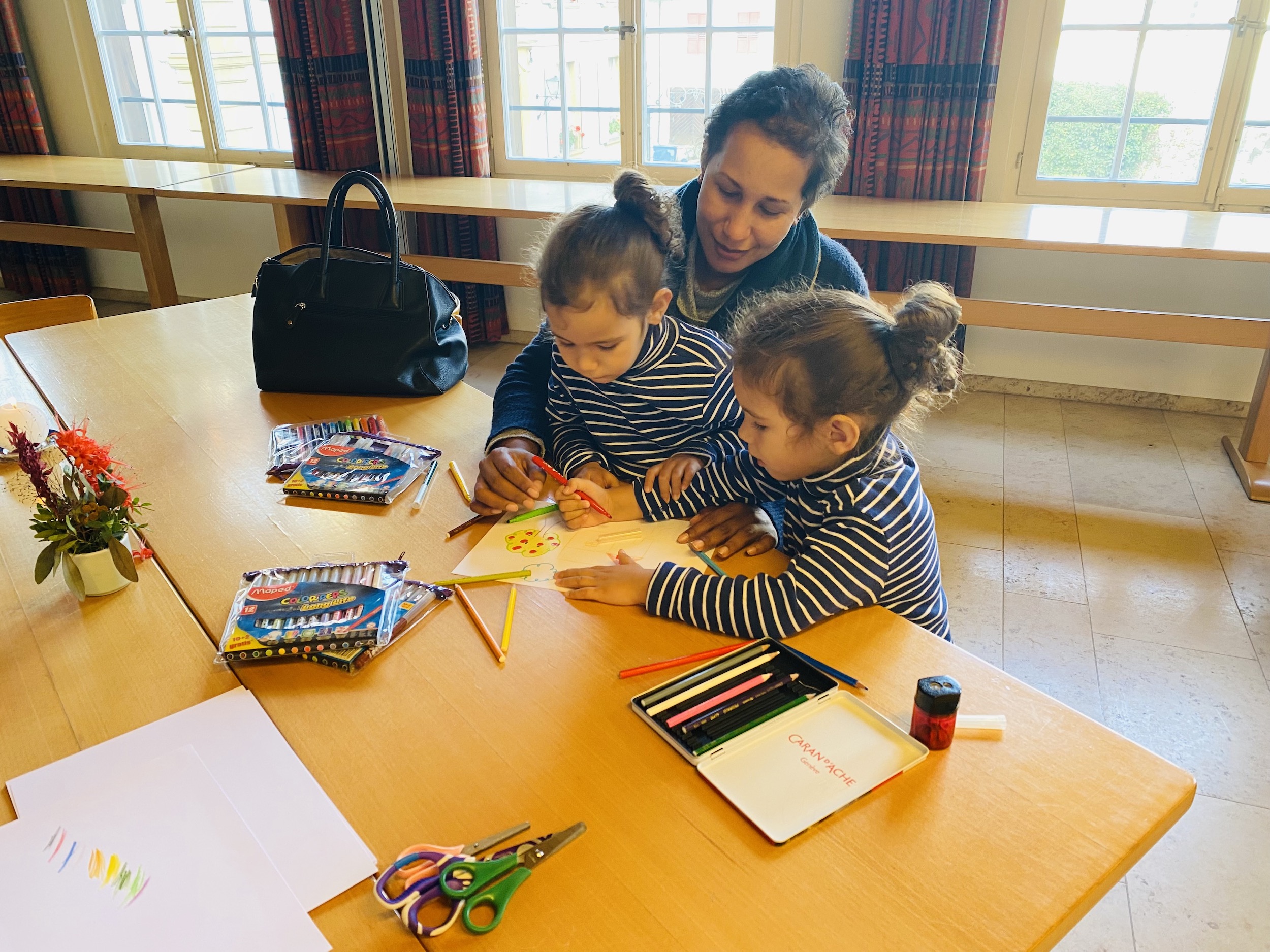 Die kleineren Kinder spielten miteinander und lernten sich rasch näher kennen; zwei etwas ältere Mädchen malten farbenfrohe Bilder. Wir durften die Mütter näher kennenlernen – und uns mit ihnen über den Alltag und das Mutter-Sein austauschen.