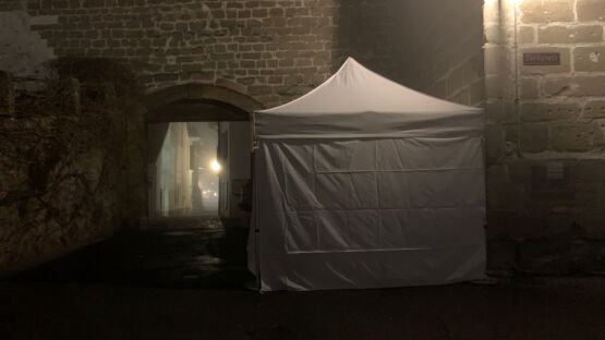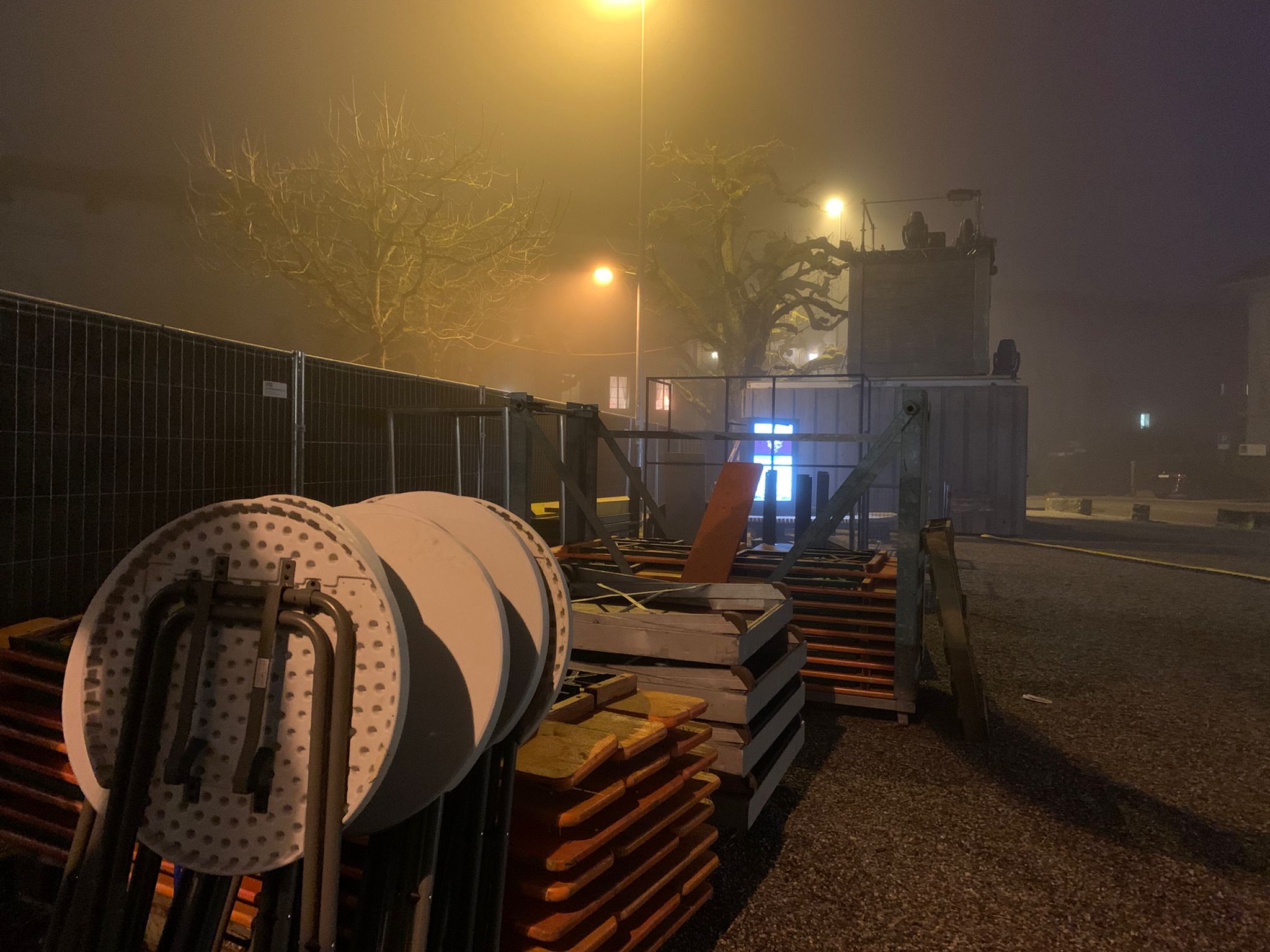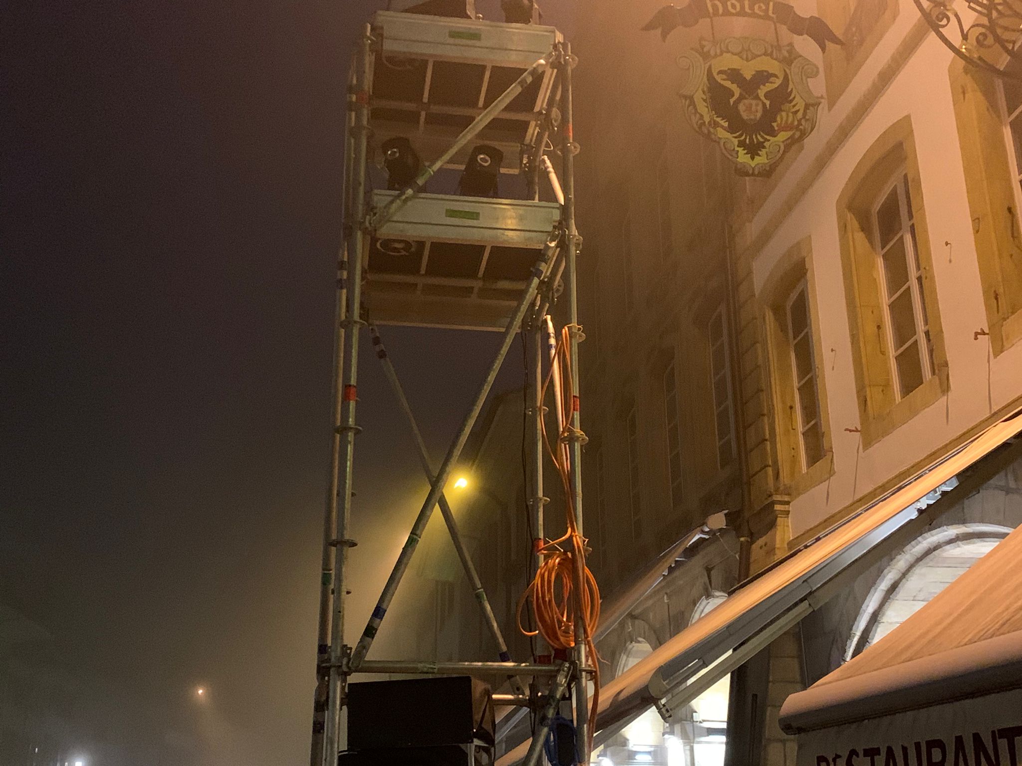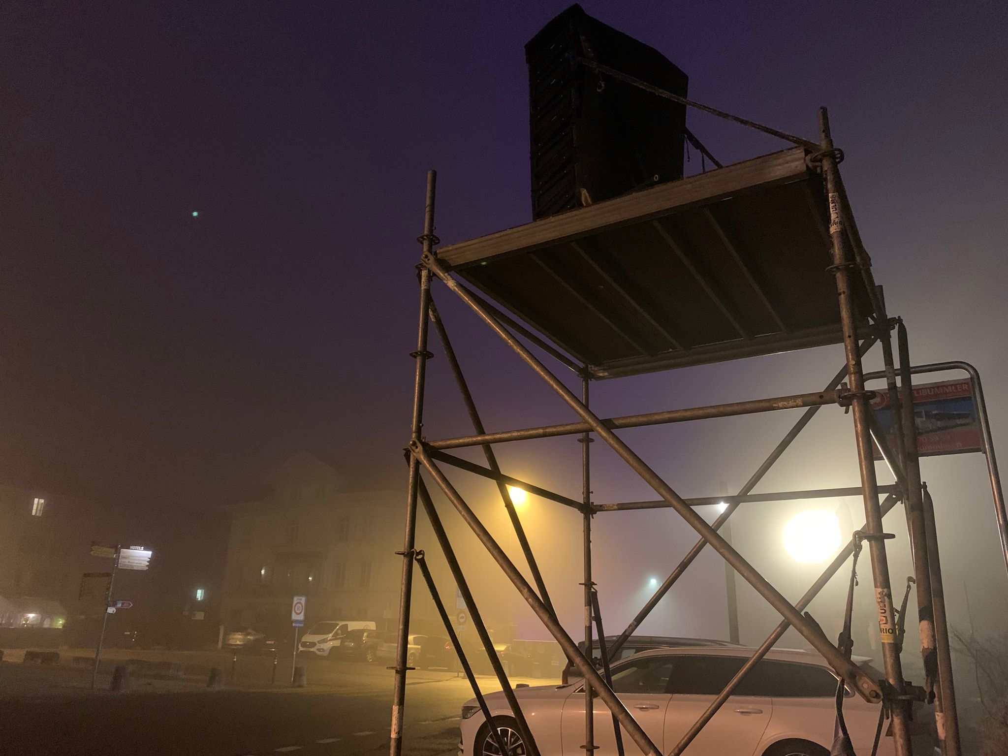 Einige Tage vor der Eröffnung des Licht-Festivals in Murten ist so einiges in und um die Stadt zu beobachten. Da entstehen neue Wege zur Orientierung für die Besucher, überall ist viel Material aufgestapelt, hohe Metallgestelle, Scheinwerfer. Dies weckt bei nächtlichen Spaziergängern Vorfreude aufs bevorstehende Farbenspiel. Noch ist Murten ruhig und wirkt vor allem im spätabendlichen Nebel wie eine Geisterstadt, bevor es dann am 19. Januar 2022 mit den Beleuchtungen und Anscheinungen der Mauern und Bäume losgeht.