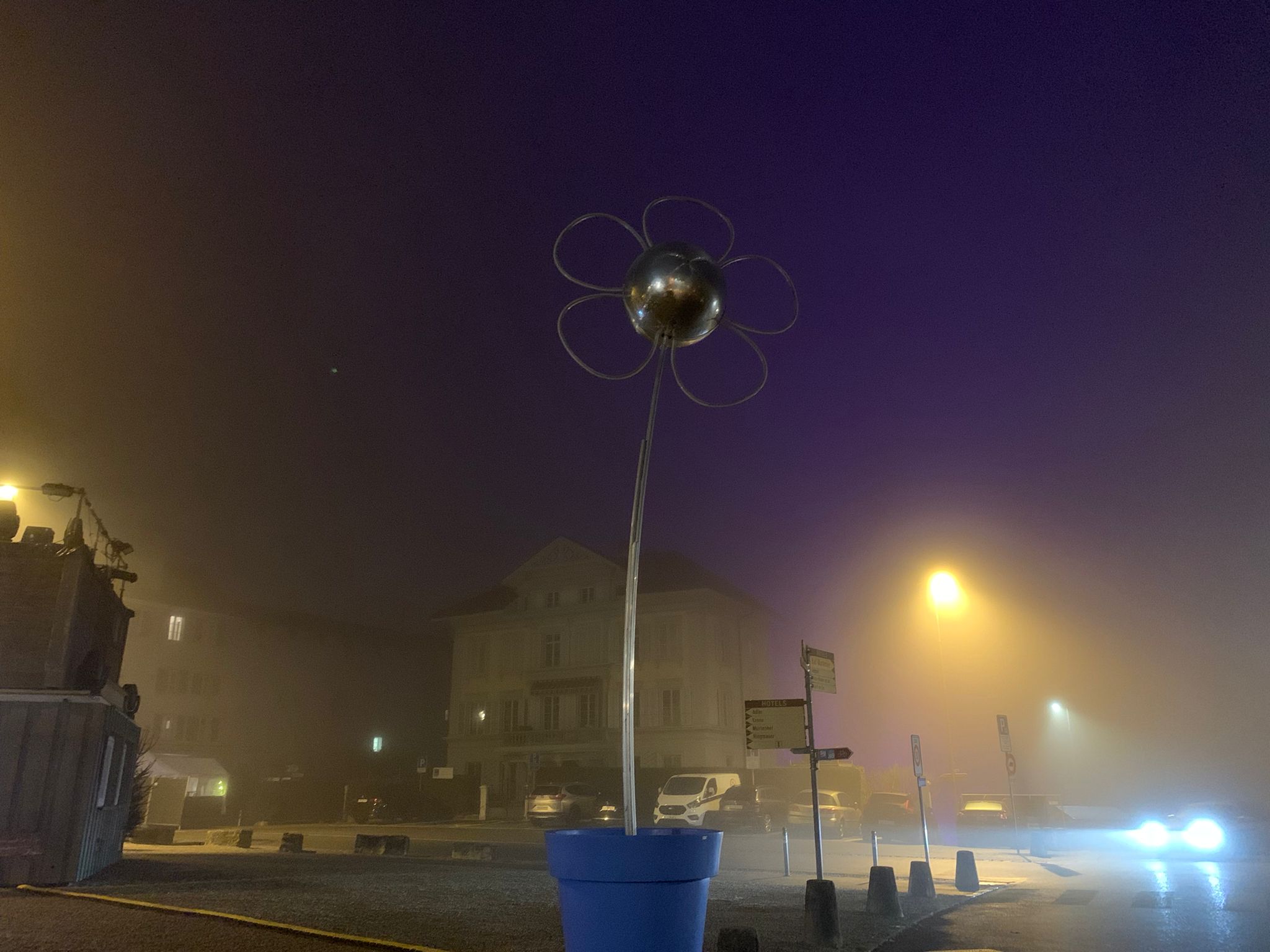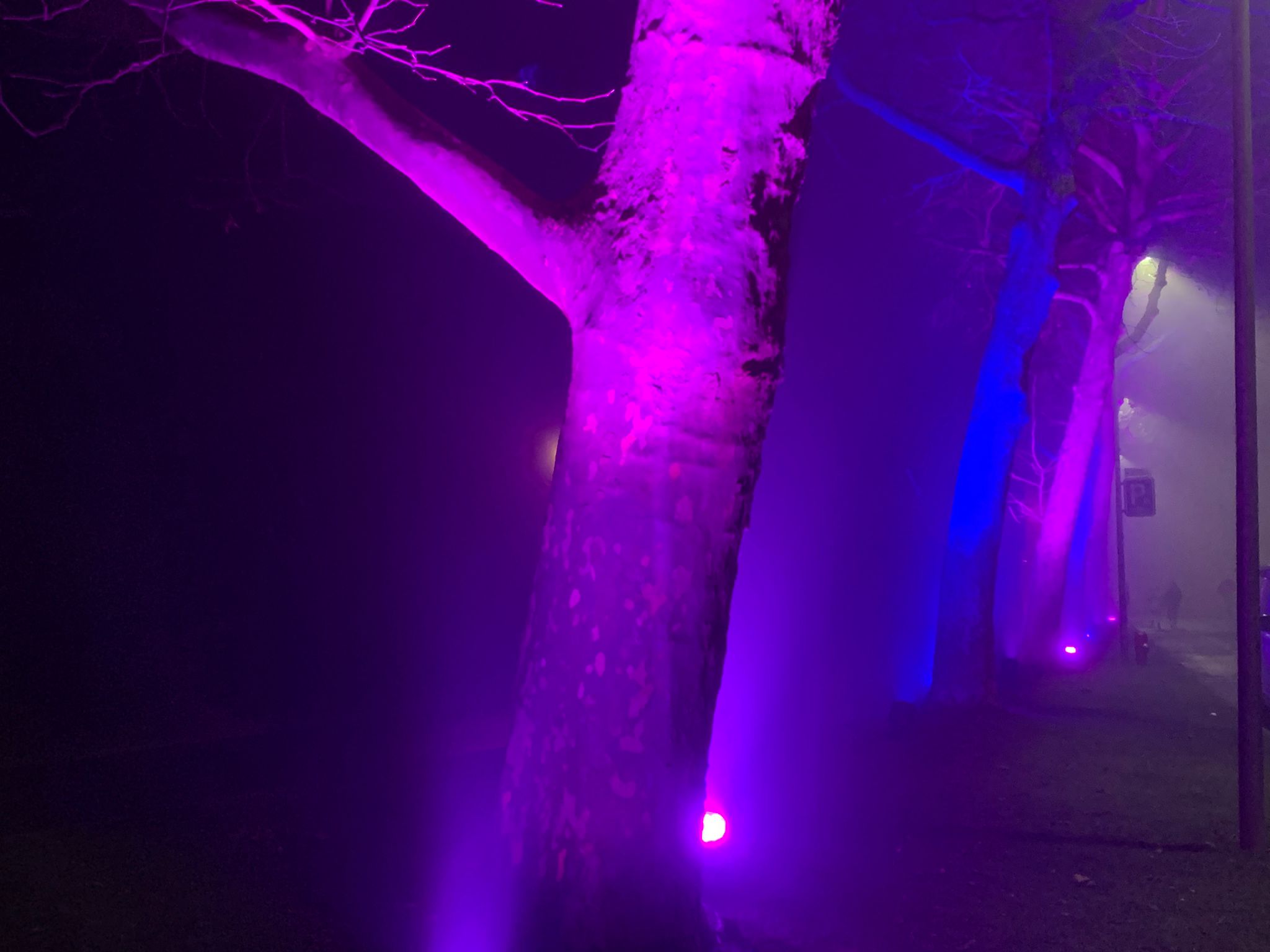 Im dichten Bodennebel könnten die farbigen Scheinwerfer für unklare Projektionen sorgen und unerwartete, vielleicht noch geheimnsivollere Eindrücke entstehen lassen. Sicher wird uns das Licht im Dunkeln gut tun, das Herz erleichtern, den Geist öffnen und ein Lächeln beim Anblick der ideenreichen Lichtprojektionen ins Gesicht zaubern!