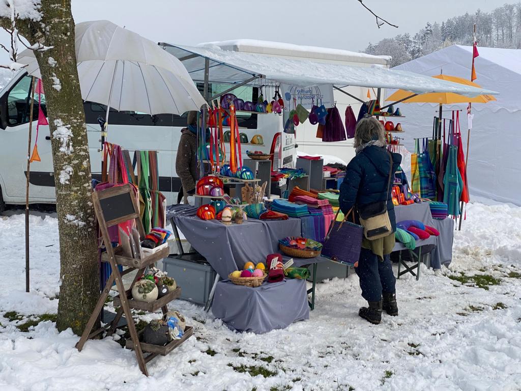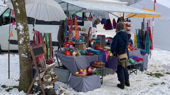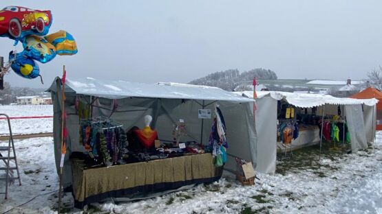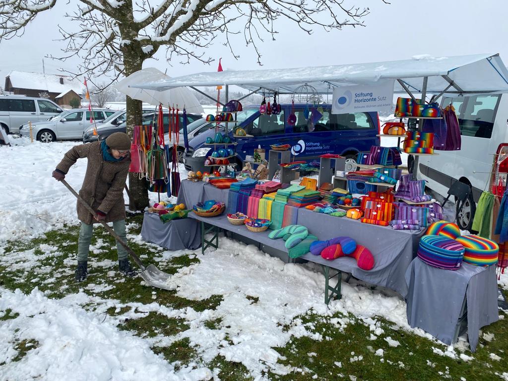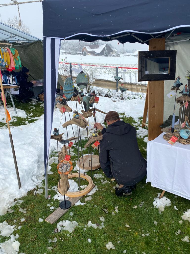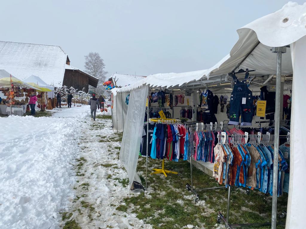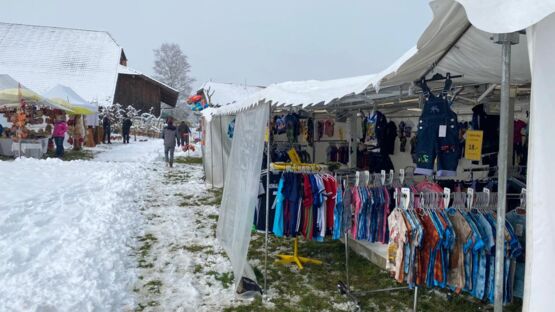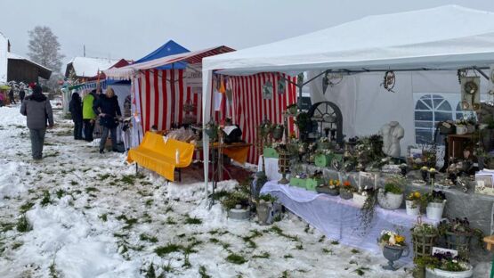Nach zwei Jahren Pause konnte der traditionelle Ulmizer Frühlingsmärit dieses Jahr nun endlich wieder durchgeführt werden. Die Rückkehr des Winters stellte die rund fünfzig Ausstellenden dann heute Morgen jedoch vor einige ganz neue Herausforderung. Er sei in der Nacht vorbeigekommen, um das Zelt vom schweren Schnee zu befreien, sagte einer der Aussteller. Seine Standnachbarin war währenddessen mit Schneeschaufeln vor ihrer Verkaufsfläche beschäftig. Und eine weitere Standbetreibende erzählte, dass sie die am letzten Sonntag zum Verkauf bereitgelegten Strickereien für den Sommer kurzerhand mit warmen Socken und kuschligen Wollpullovern ersetzt habe. Dies alles tat der Stimmung am Märit keinen Abbruch und die ersten Besucher flanierten bereits am frühen Samstagmorgen durch die Stände.