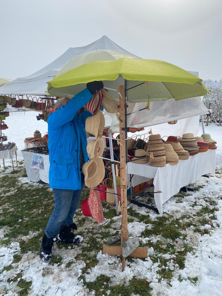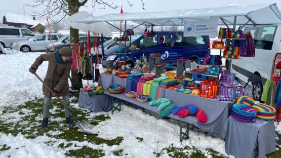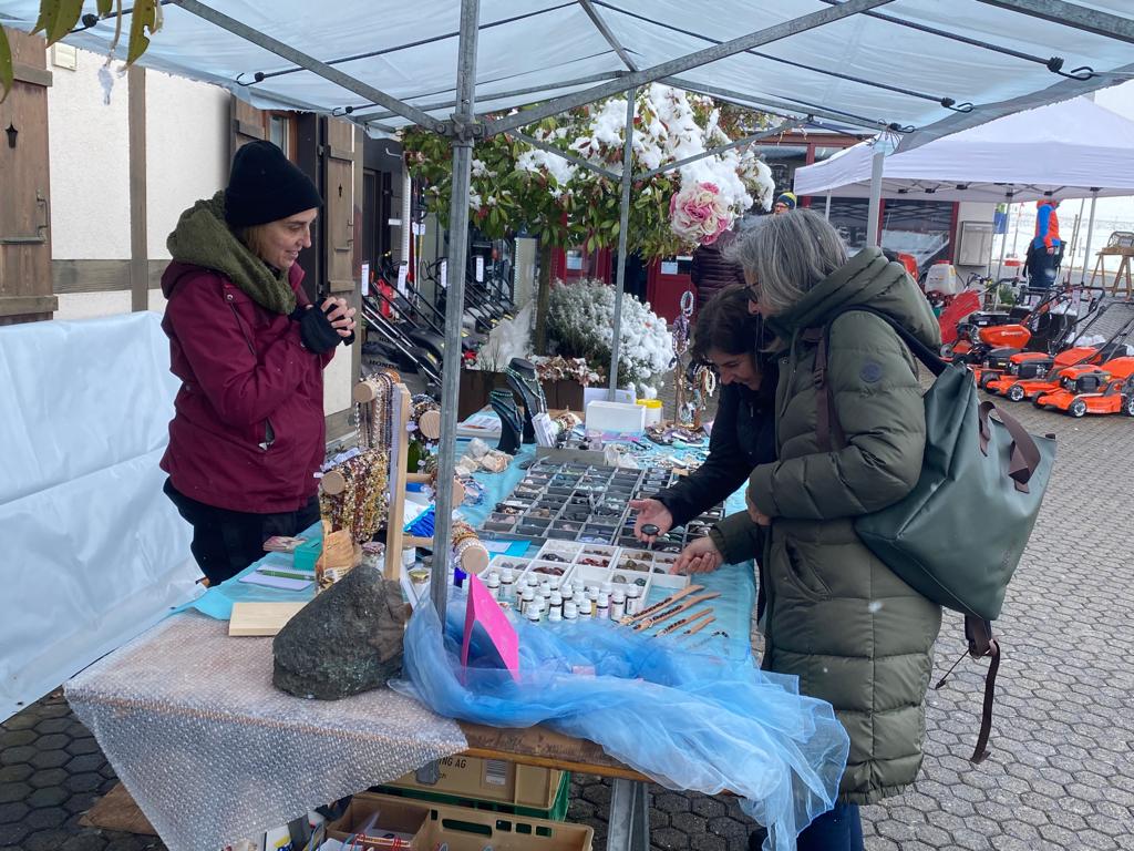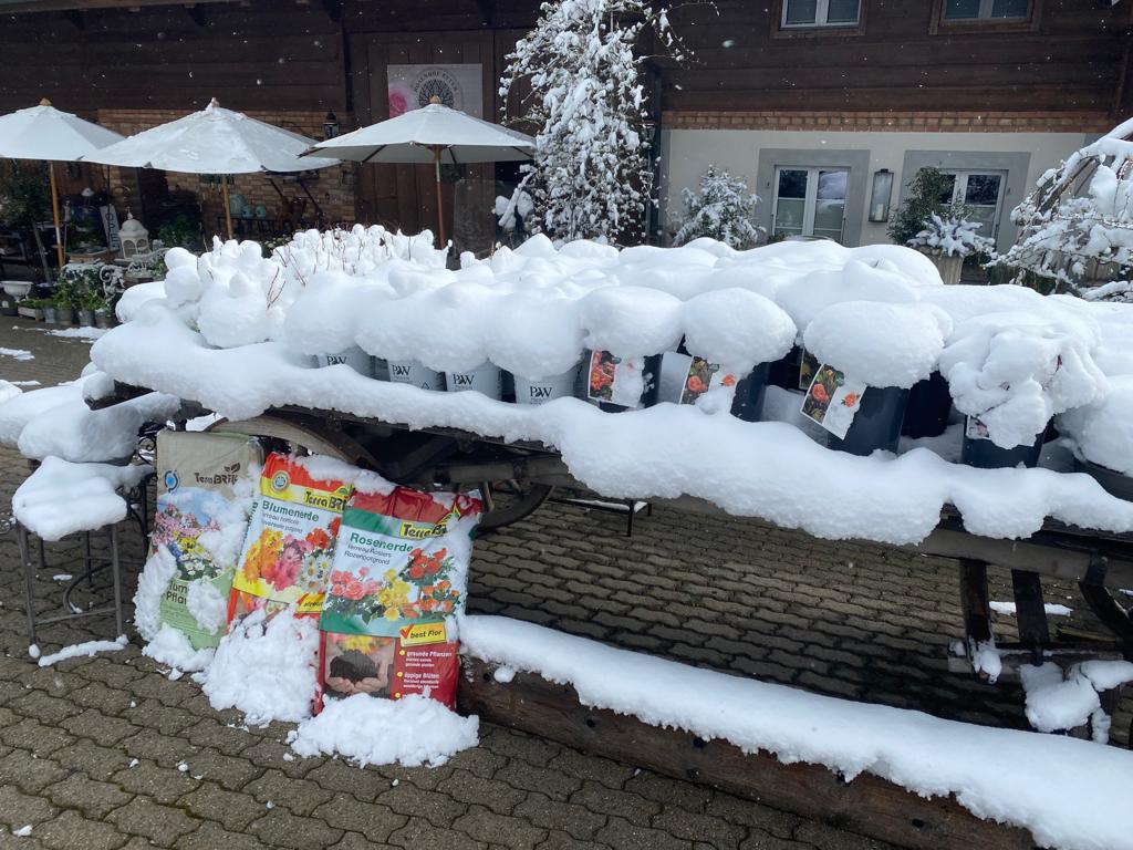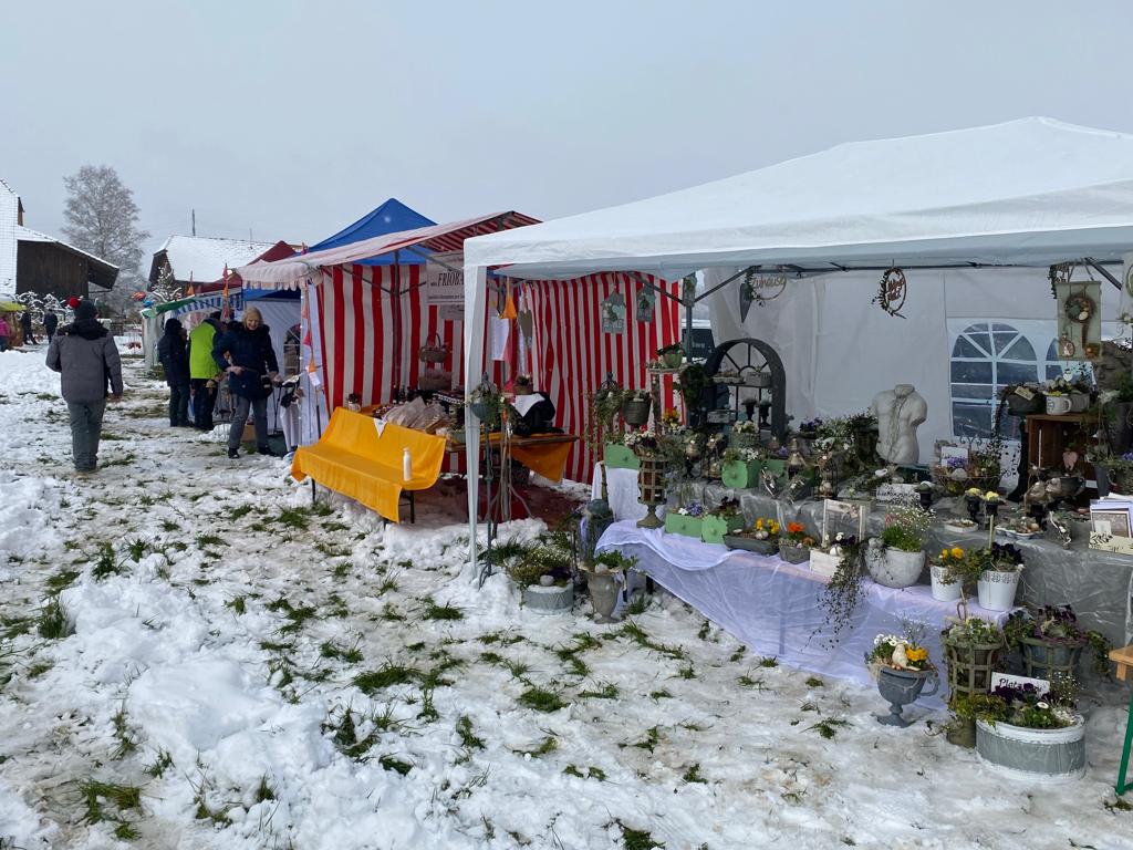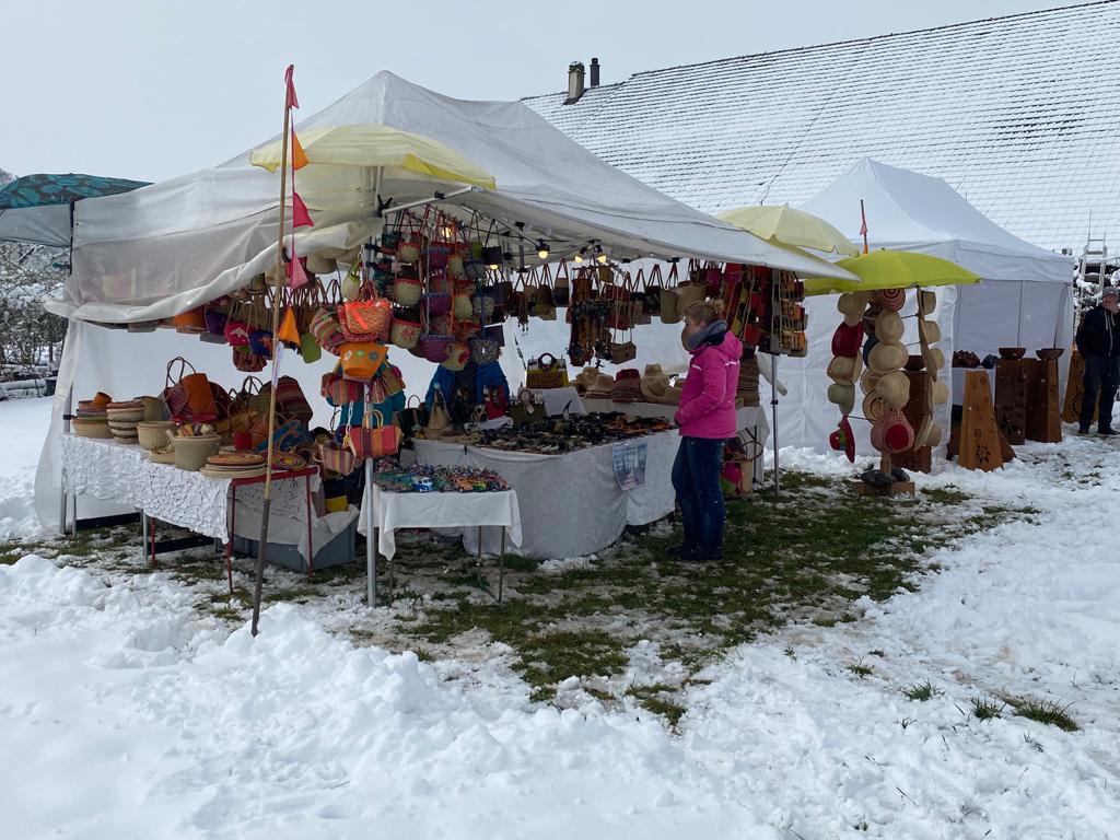 Nach zwei Jahren Pause konnte der traditionelle Ulmizer Frühlingsmärit dieses Jahr nun endlich wieder durchgeführt werden. Die Rückkehr des Winters stellte die rund fünfzig Ausstellenden dann heute Morgen jedoch vor einige ganz neue Herausforderung. Er sei in der Nacht vorbeigekommen, um das Zelt vom schweren Schnee zu befreien, sagte einer der Aussteller. Seine Standnachbarin war währenddessen mit Schneeschaufeln vor ihrer Verkaufsfläche beschäftig. Und eine weitere Standbetreibende erzählte, dass sie die am letzten Sonntag zum Verkauf bereitgelegten Strickereien für den Sommer kurzerhand mit warmen Socken und kuschligen Wollpullovern ersetzt habe. Dies alles tat der Stimmung am Märit keinen Abbruch und die ersten Besucher flanierten bereits am frühen Samstagmorgen durch die Stände.