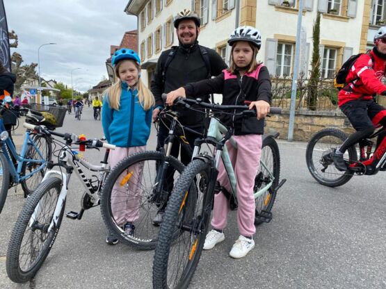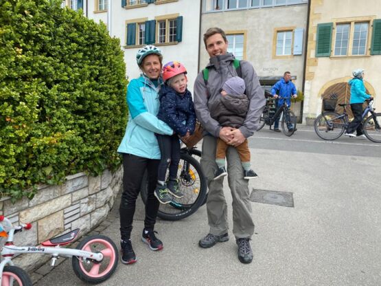 «Wir sind zum ersten Mal dabei. Eigentlich wollten uns noch Freunde von auswärts begleiten, die dann jedoch wegen der schlechten Wetterprognose absagten. Nun sieht es aber gar nicht so schlecht aus. Trotzdem werden wir mit den Kindern mit Trottinett und Rollerblades nicht die ganze Runde schaffen, sondern dann irgendwo das Schiff nehmen für den Rückweg. Mit unserer Teilnahme wollen wir die Idee eines nicht motorisierten Sonntages unterstützen, wo man es auch mal etwas ruhiger nehmen kann.»