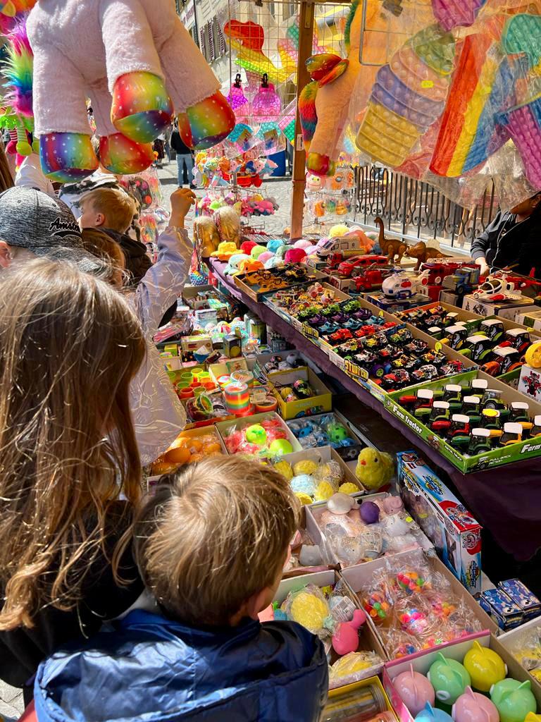 Beim Karussell und Trampolin amüsierten sich die kleinen Besucher, da leuchteten Kinderaugen und so mancher Dreikäsehoch kam sich wohl vor, als sei er ein Astronaut oder eine Rennfahrerin. Die Auslagen mit buntem Kinderspielzeug wurden von den Kindern regelrecht belagert. Glitzernde Einhörner, Dinosaurier und vieles mehr wurde bestaunt und augenscheinlich sind auch Oldies, wie der Zauberwürfel und die coole Spirale in Regenbogenfarben, noch immer beliebt.