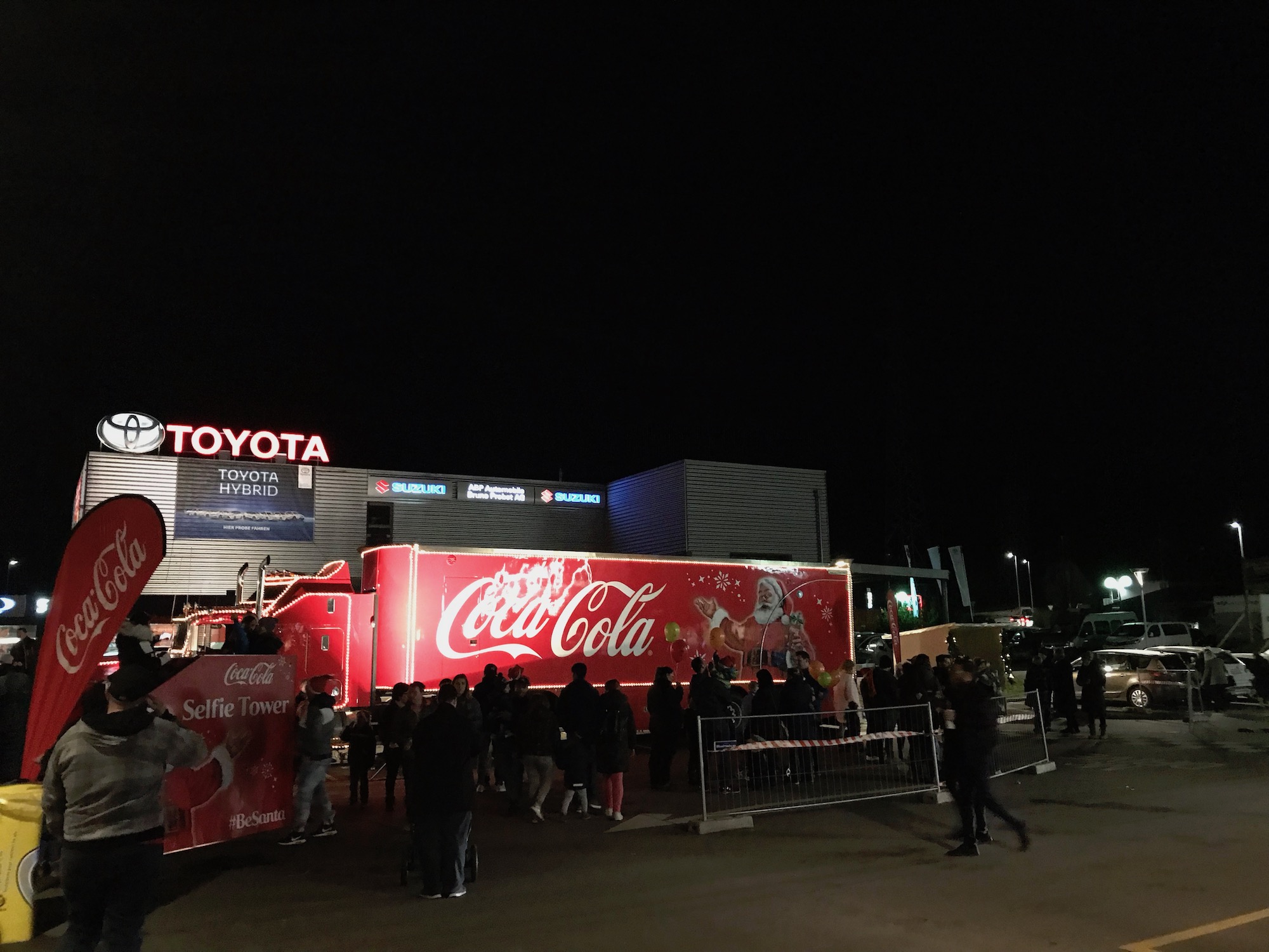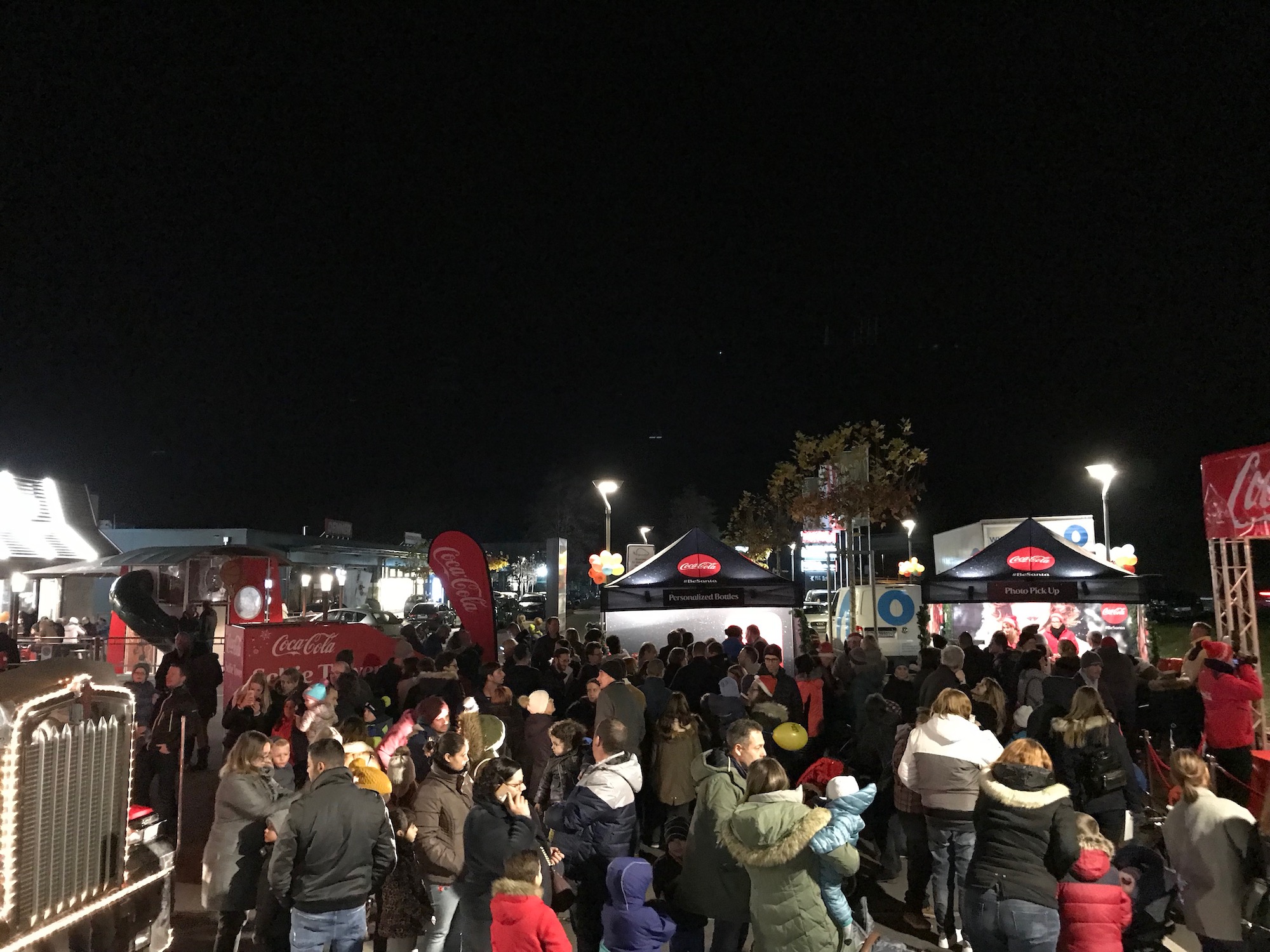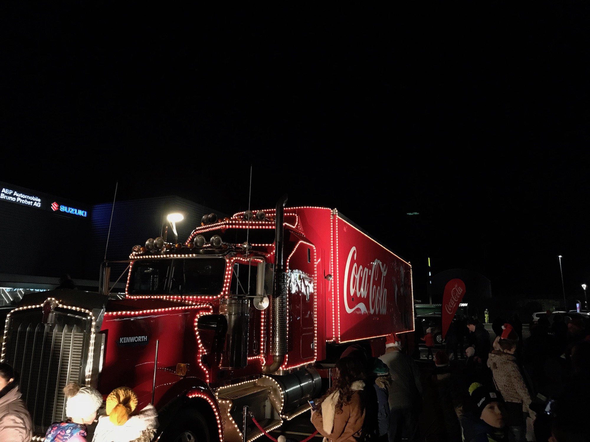 Heute durften die Murtner ein Stück Amerikanische Tradition erleben: Der berühmte Weihnachtstruck von Coca-Cola war in Murten zu Gast. Natürlich nicht irgendwo, sondern vor dem Mc Donald's. Die Aktion begeisterte heute von 14:00 bis 20:00 Uhr mehrere hundert Kinder und Erwachsene. Auf einem Selfie-Tower konnte man aus guter Position ein Selfie mit dem festlich beleuchteten Lastwagen machen. An einem weiteren Stand bekam man ein personalisiertes Coca-Cola-Fläschchen mit seinem Namen drauf. Auch der Weihnachtsmann fehlte nicht. Wer genug Mut und Geduld zum Anstehen hatte, durfte ein Foto mit ihm machen.