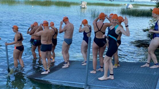 Das tiefe Dunkelblau des Murtensees war am heutigen sonnigen Sonntagmorgen während rund zwei Stunden gespickt mit ca. 300 orangen Punkten. Es waren die leuchtenden Badekappen der Teilnehmerinnen und Teilnehmer der traditionellen Murtenseeüberquerung. Nachdem der Anlass letztes Jahr wegen dem Hochwasser abgesagt und vergangene Woche aufgrund von erwarteten starken Bisenböen um eine Woche verschoben werden musste, klappte es dann heute (unsereRegion berichtete: Murtenseeüberquerung um eine Woche verschoben). Die Bedingungen waren ideal, mit ruhigem Wasser und einer Wassertemperatur von 26 Grad, wie OK-Präsident Raphael Giullod gegenüber unsereRegion kurz vor dem Start erklärte.