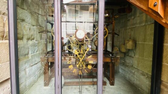 Wir bestaunten das raffinierte Uhrwerk des Rathauses unterhalb der Stadtmauer und konnten auf einer Fotografie dasjenige der Uhr am Berntor begutachten. Letztere muss täglich neu aufgezogen werden.