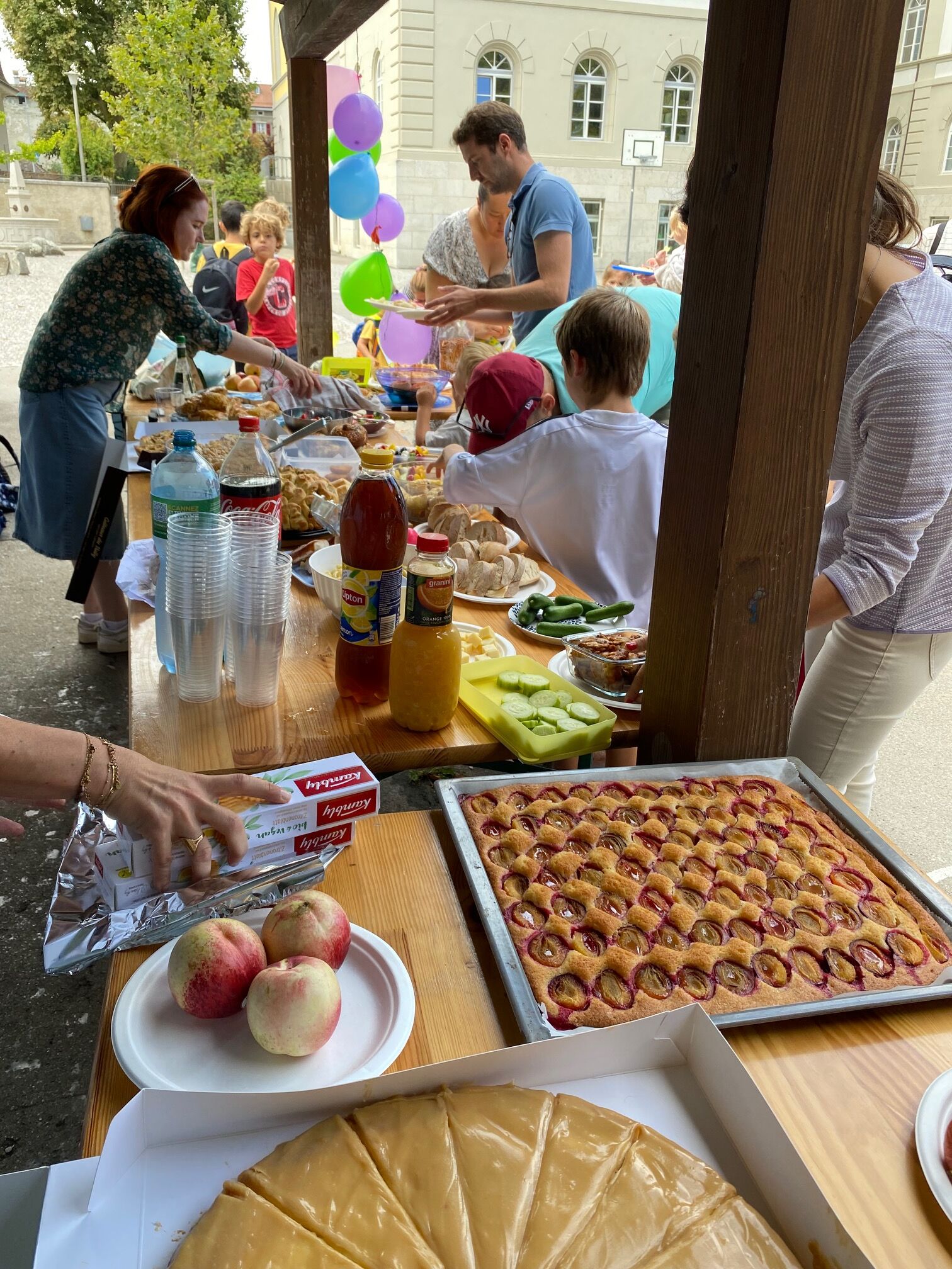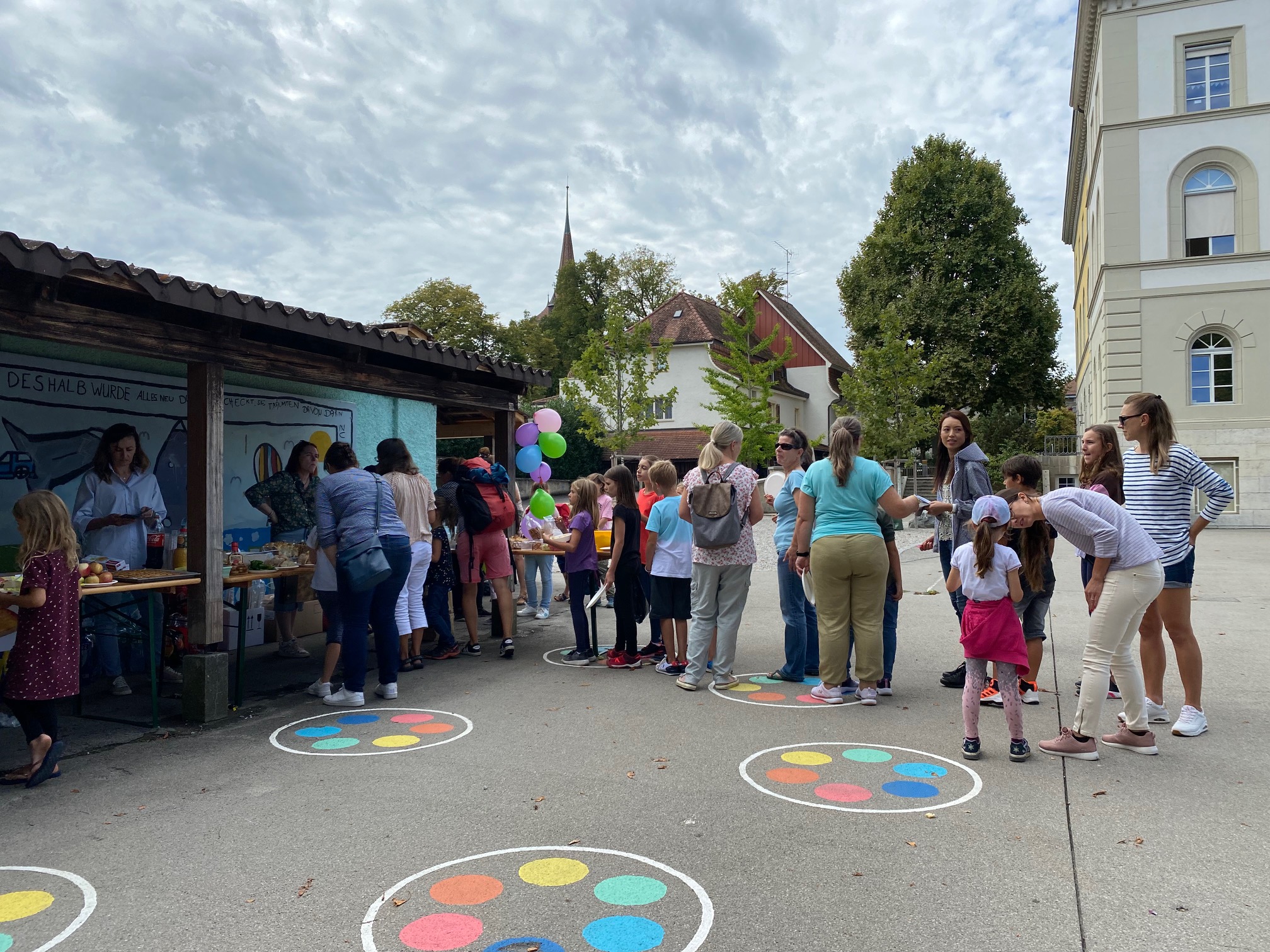 Der Schulstart liegt schon ein paar Tage zurück. Über 100 Kinder und Eltern verschiedener Nationalitäten trafen sich am Mittwochnachmittag, 7. September 2022, zu einem gemütlichen kanadischen Buffet. Was ist die Idee eines kanadischen Buffetts? «Das Konzept ist ganz einfach», so Daniela vom OK-Team. «Jede Familie bringt salziges oder süsses Essen mit und es hat für alle genug!». Die Erfahrung zeigt: Es funktioniert immer! Ziel des Anlasses ist, dass sich die Kinder und Eltern nach dem Schulstart in ungezwungener Atmosphäre bei einem Glas Eistee und z.B. einem Hörnli-Salt kennenlernen und auszutauschen können.
