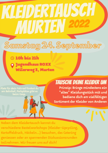 Der Kleidertausch findet am Samstag, 24. September 2022 von 10 - 21 Uhr im Jugendhaus ROXX am Wilerweg 3 statt und steht allen Generationen offen.