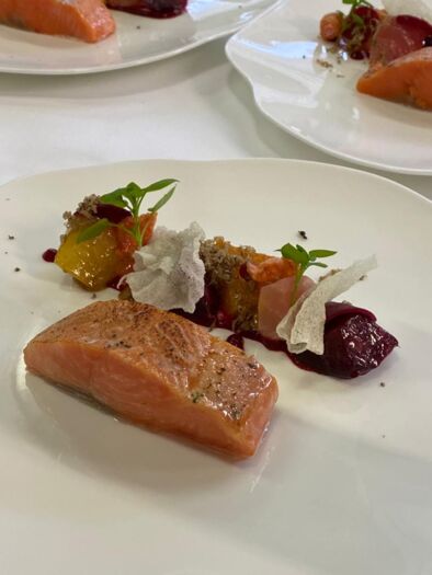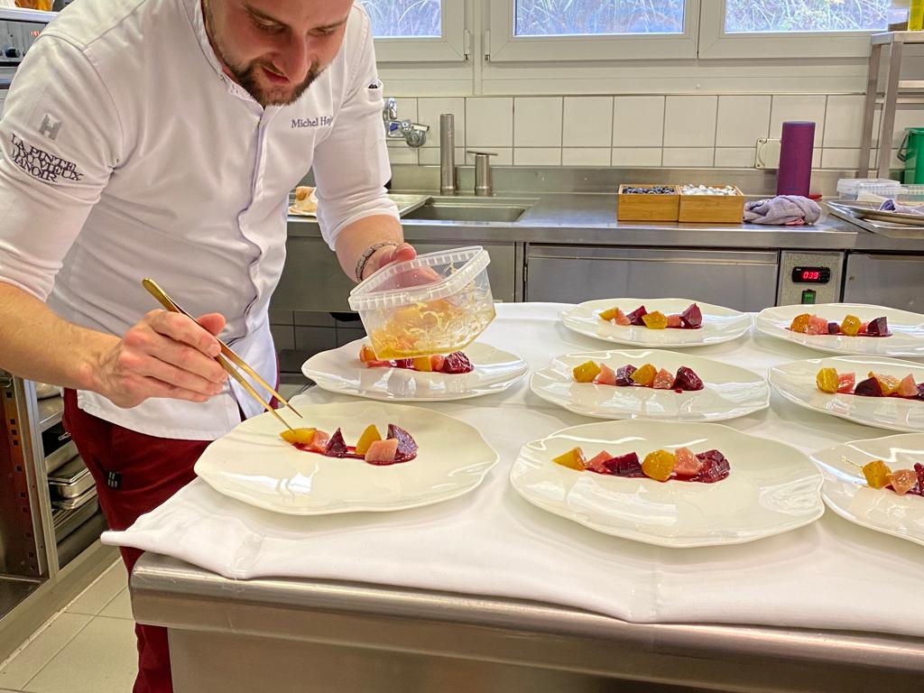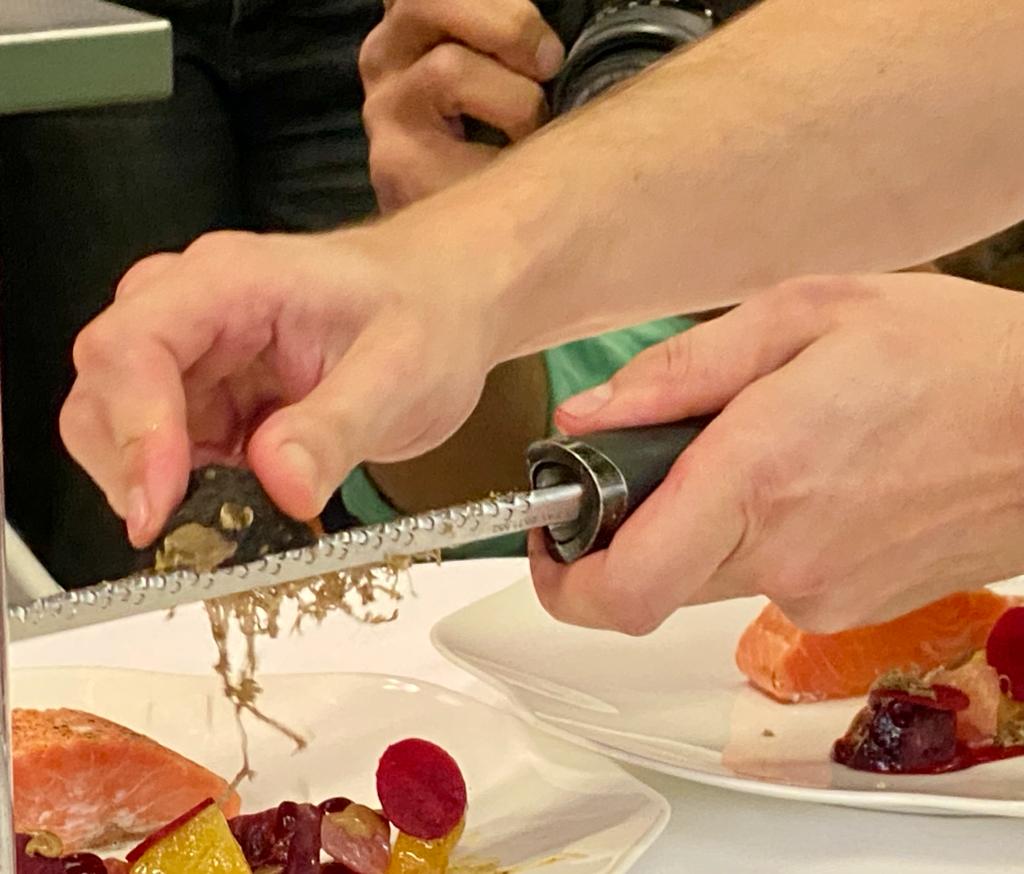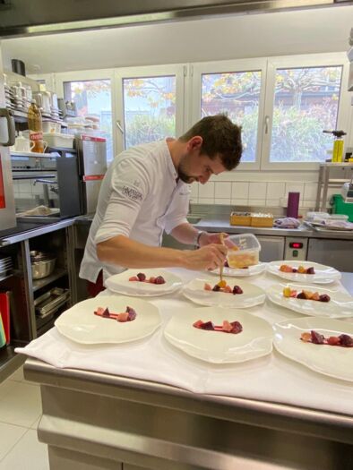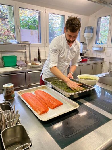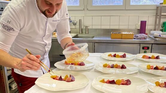 Auf das Festessen am Freitagabend, dessen Erlös dieses Jahr in die "Stiftung Jugendförderung - Andenken an Peter Jeger" fliesst, dürfen sich die Gäste freuen. Michel Hojac verwöhnte am Presse-Event mit dem von ihm kreierten Entrée "Lachsforelle mit roter und gelber Beete, Baumnuss – und Trüffel", ein wahrer Schmaus für Auge und Gaumen!