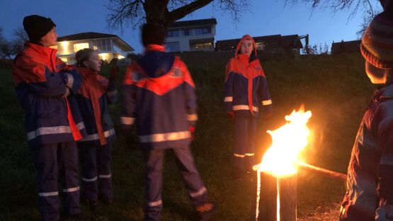 6 / 11BildergalerieFinnenkerze in Münchenwiler – gut bewacht von der Jugendfeuerwehr Murten. -