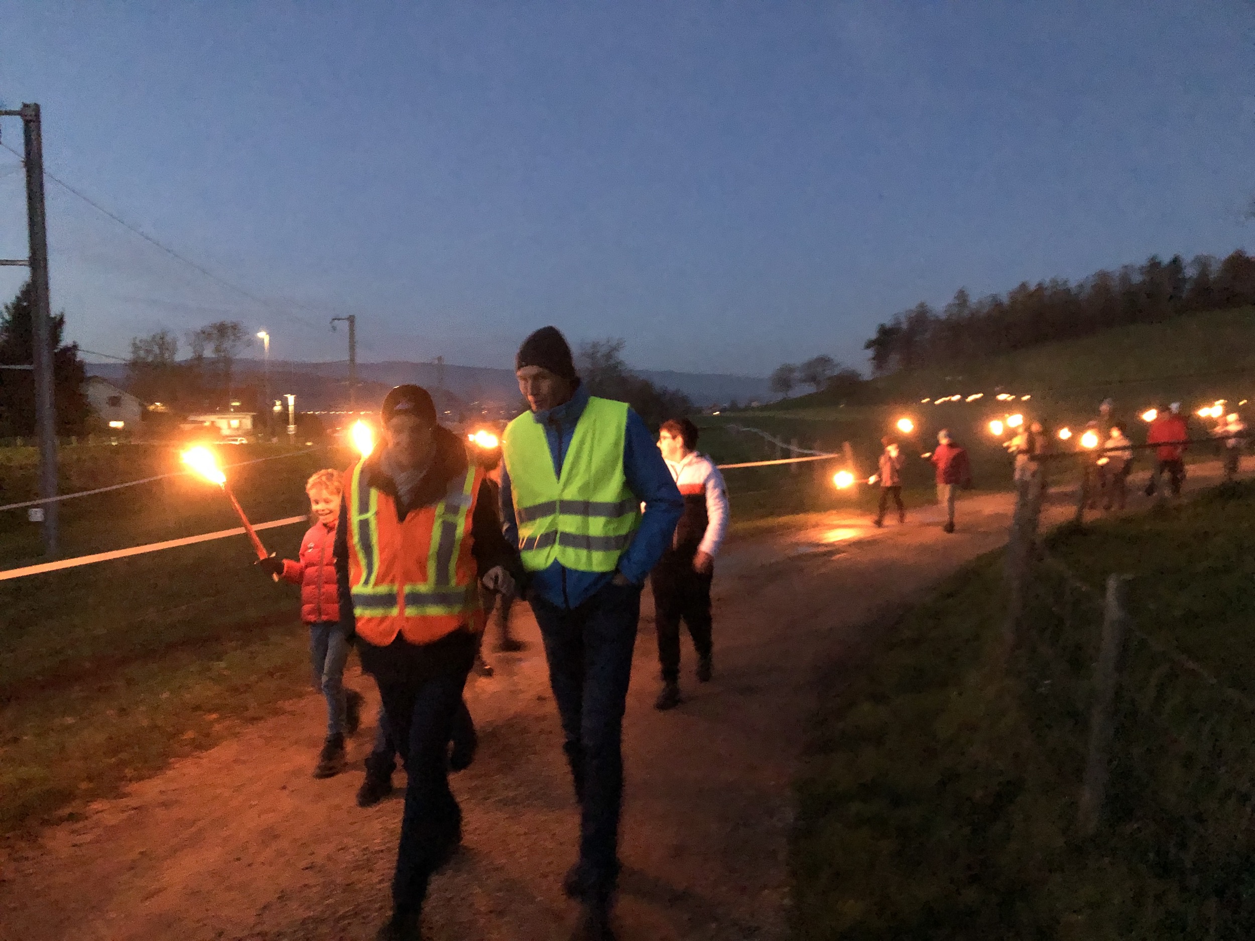 Am Vorabend des ersten Advents war es wieder so weit: Die Sportkommission lud zur traditionellen Fackelwanderung ums Bodemünzi. – Und offenbar stimmte dieses Jahr alles, so dass rund 110 Kinder, Jugendliche sowie deren Eltern unter dem Flackern der Fackelflammen in die Nacht hineinwanderten.