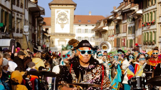 Um 15:03 führten die Rotsee-Husaren den Fastnachtsumzug mit Murtnern- und auswärtigen Gast-Guggen an. Die Gruppe aus Ebikon/LU ist seit Jahren Ehrenmitglied der FGM (Fastnachtsgesellschaft Murten). Die weiteren Wagen folgten Schlag auf Schlag, so dass sich kaum eine*r den mitreissenden lauten Klängen entziehen und noch still stehen konnte. Auch die Wagenbauer leisteten ganze Arbeit und trugen mit ihren detailreichen Sujets zur ausgelassenen Stimmung bei.