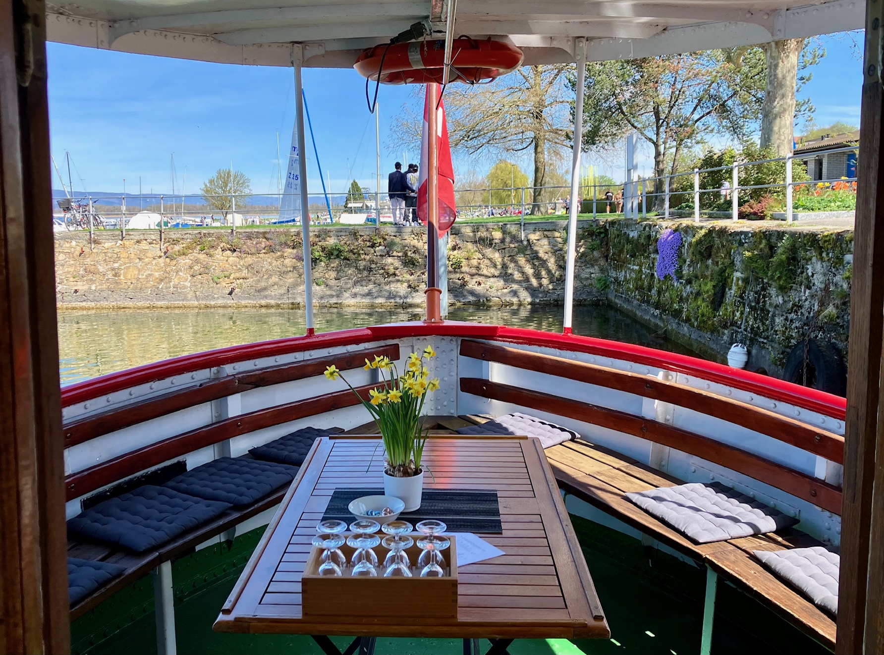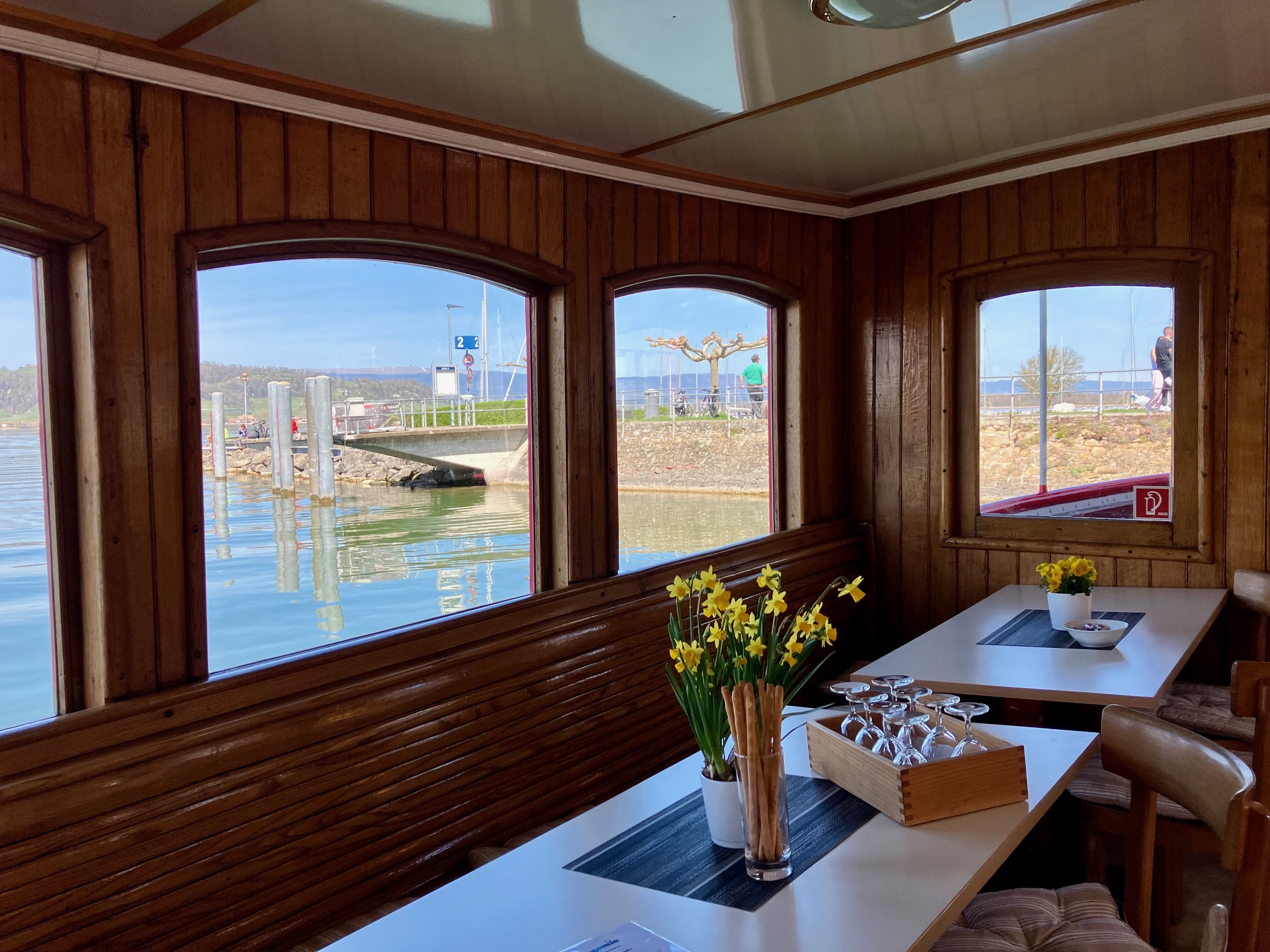 Zugelassen für 60 Personen erfüllt das MS Murten moderne Sicherheitsstandards und ist mit fortschrittlichen Navigationsgeräten ausgestattet.