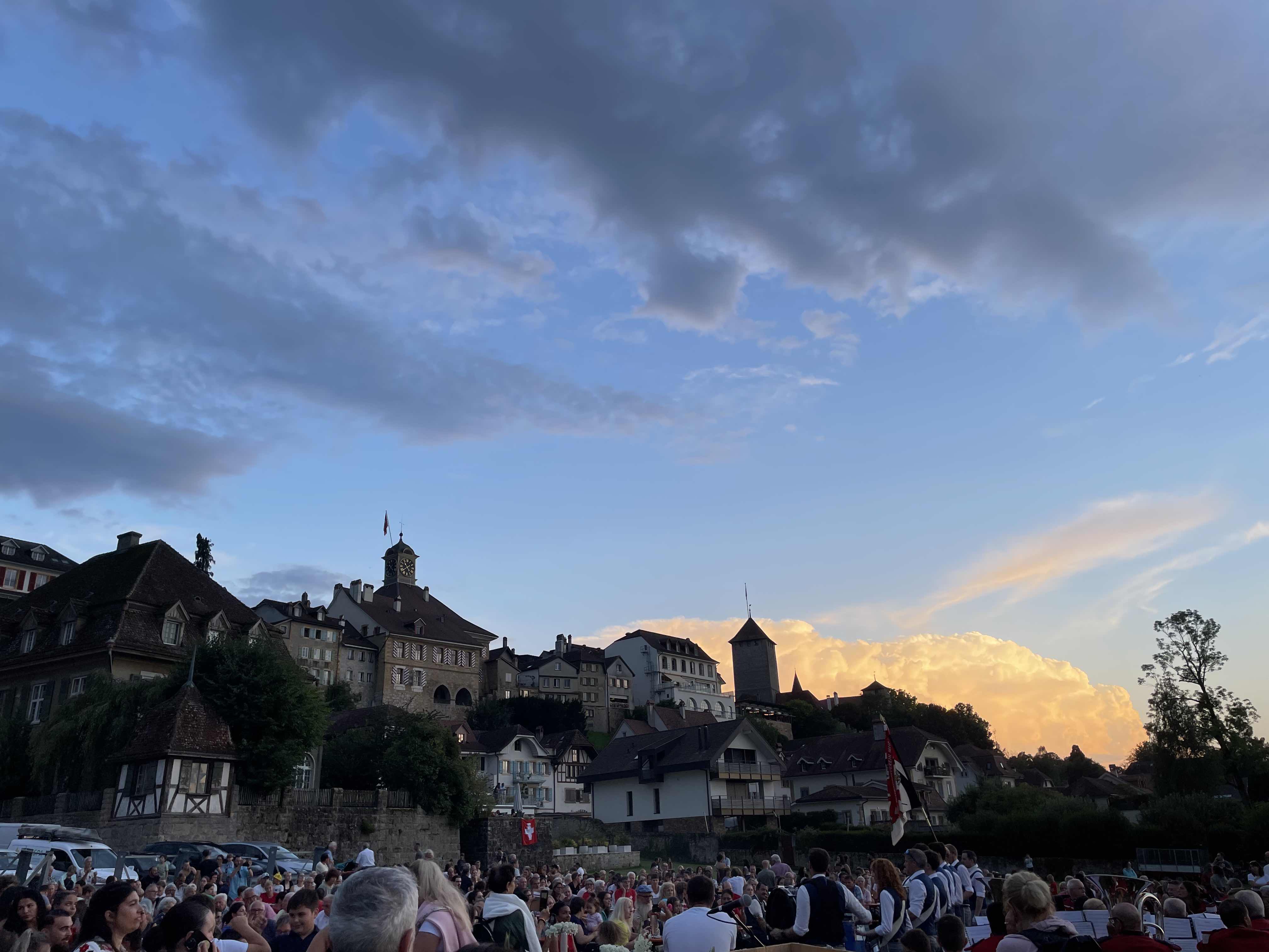 Danach wurde der Nationalpsalm in Deutsch und Französisch gesungen, ehe die Gäste warteten, bis endlich 22.15 war und das Feuerwerk losging. Dieses war klassisch gehalten wie in den Vorjahren, doch setzte immer wieder kreative Nadelstiche. Es war auf jeden Fall lohnenswert, zuzuschauen!