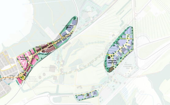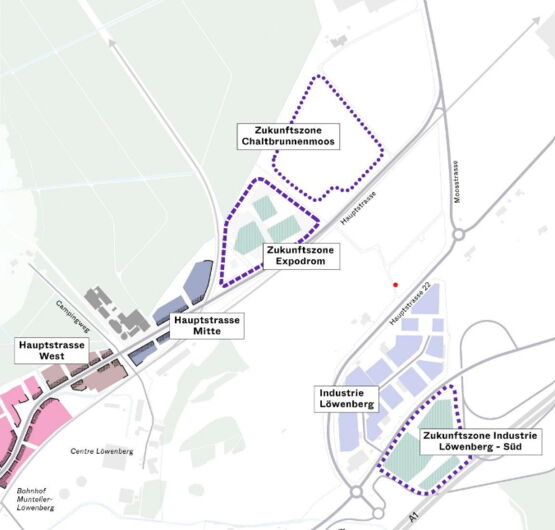 Das Nutzungskonzept sieht verschiedene Gebiete vor, welche in Zukunft für Arbeiten oder Wohnen genutzt werden können. Der Fokus liegt wie bereits erwähnt auf der Verdichtung und der Nutzung der bereits bestehenden Zonen. Für künftige Nutzungen sind die folgenden drei Zukunftszonen vorgesehen: Expodrom, Chaltbrunnenmoos und Industrie Löwenberg Süd (siehe Illustration unten)