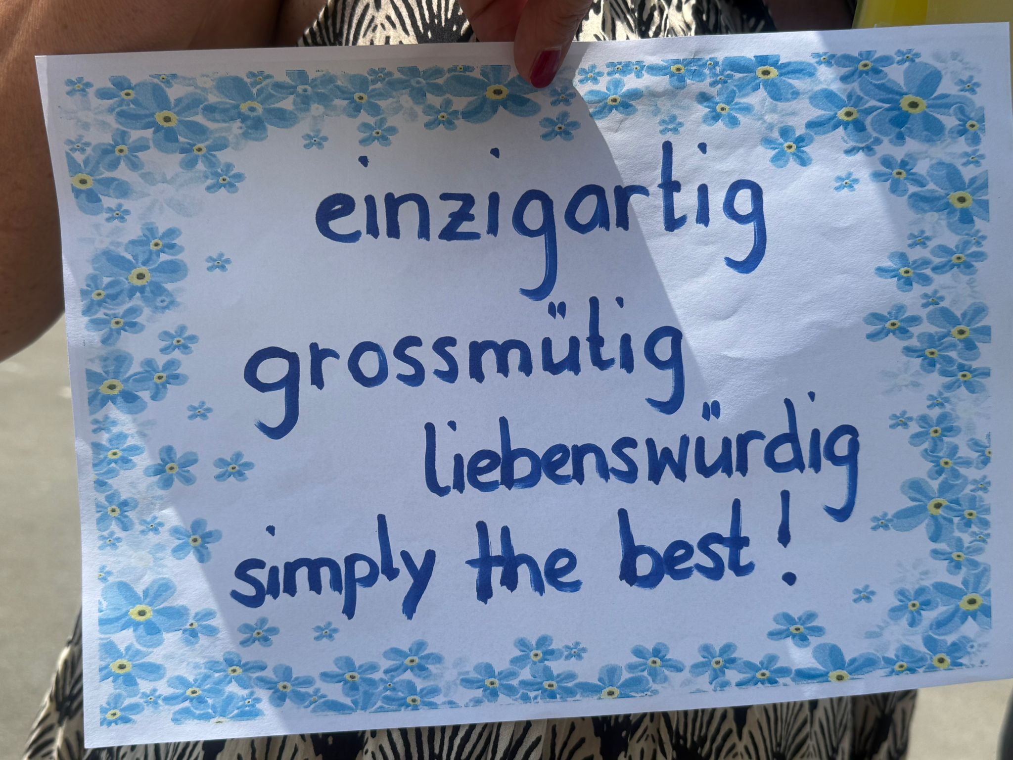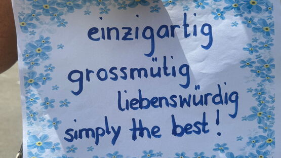 Es ist kein Geheimnis, dass Lehrpersonen kreativ und einfallsreich sind, was unter anderem immer wieder bei den Verabschiedungszeremonien sichtbar wird! Regula Hurni wurde gebührend geehrt und gefeiert und sie war sichtlich gerührt und überwältigt von den spalierstehenden Lehrpersonen, die alle eine zu Regula passende Eigenschaft auf einem Plakat notiert haben, die sie beim langsamen Passieren lesen konnte. Ein Höhepunkt folgte dem anderen und nun beginnt ein neuer Abschnitt im Leben der pensionierten Lehrerin: mehr Zeit für die Familie, viel Neues ausprobieren und vor allem mit Schwung, Mut und Visionen!