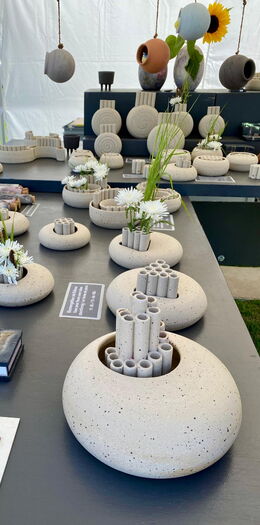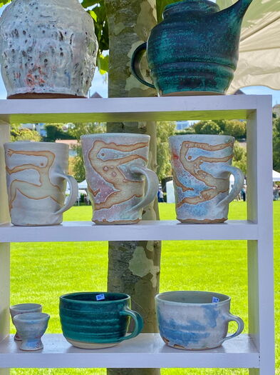 An den Ständen wurde intensiv gefachsimpelt, und die Begeisterung der Künstler für ihr Handwerk war greifbar. Sie erklärten geduldig die Unterschiede zwischen Drehen auf der Töpferscheibe und dem freien Modellieren, sprachen über die besondere Herausforderung des Engobe-Auftrags oder erklärten die kunstvolle Neriage-Technik, bei der verschiedenfarbige Tonmassen geschichtet und dann geschnitten oder gedreht werden, um einzigartige Muster zu erzeugen.