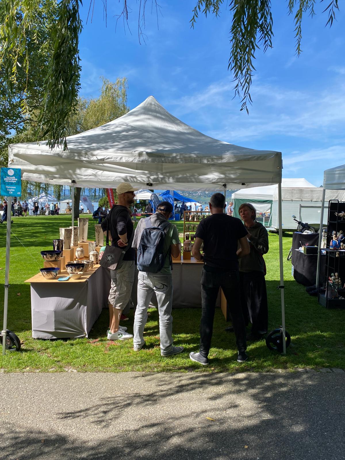 Nach so viel Inspiration lud das Seeufer zum Entspannen ein. Müde Füsse konnten im kühlen Wasser Erholung finden, während viele Besucher bei Speis und Trank die Aussicht und das tolle Ambiente genossen. Und wer genau hinsah, konnte beobachten, wie Besucher immer wieder zufrieden in ihre Tragtaschen schauten, um ihre neue Lieblingstasse oder -schale zu bewundern – ein greifbares Andenken an ein rundum gelungenes Kunsterlebnis.
