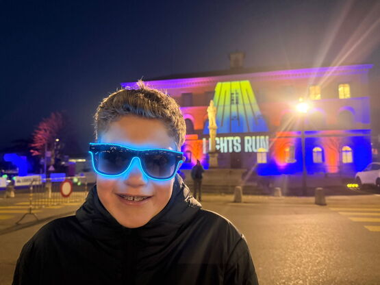 Len Oppliger aus Murten ist begeisterter Leichtathletik Sportler seit 5Jahren: «Ich freue mich auf den ersten Lights Run, er ist cool, weil er so leuchtend ist. Heute springe ich den 5km Lauf mit den Erwachsenen, aber Vollgas werde ich nicht geben, der Anlass ist ja vorgesehen, um Spass zu haben. Um zu leuchten, setze ich meine blaue Brille auf!» Len wird voraussichtlich am Sonntagabend im Sportpanorama auf SRF zu sehen sein.
