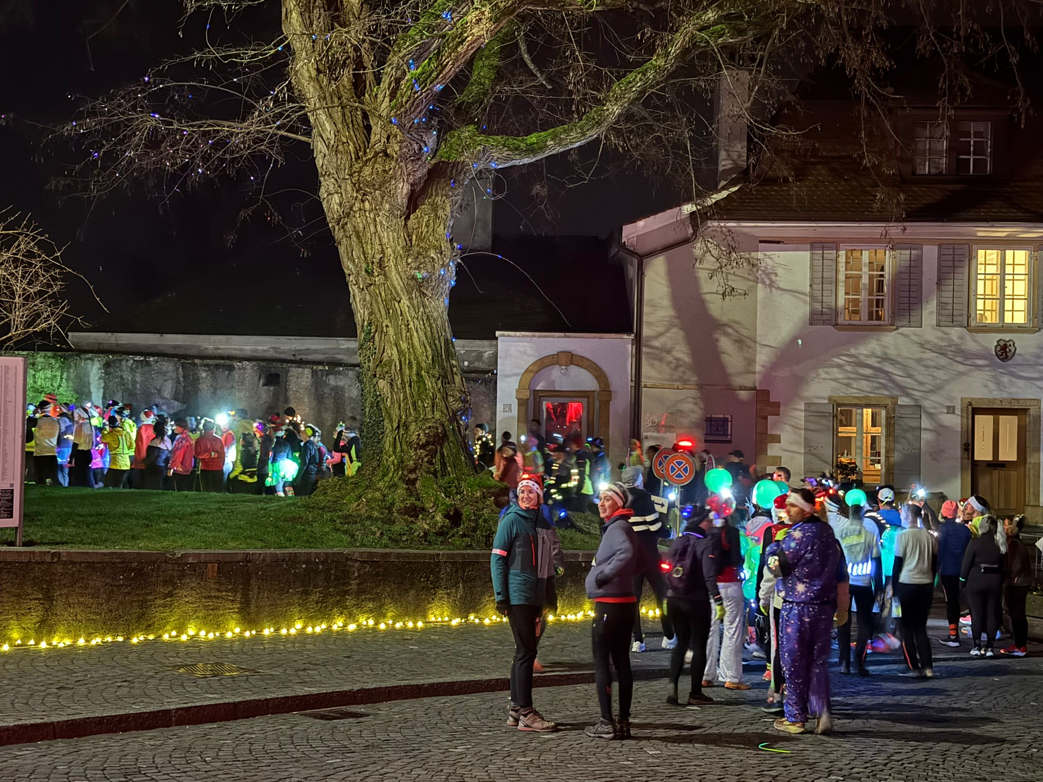 Eine 8köpfige Gruppe aus Freiburg erreicht das Ziel auf dem Berntorplatz in begeisterter und glücklicher Stimmung: «Die Ambiance mit dem Licht war super schön, vor allem am See war es richtig magisch mit den Feuern. 5km ist eine angemessene Strecke für einen Plauschrun, erst recht vor Weihnachten, um schon mal etwas Gewicht abzubauen! Nächstes Jahr kommen wir bestimmt wieder.»
