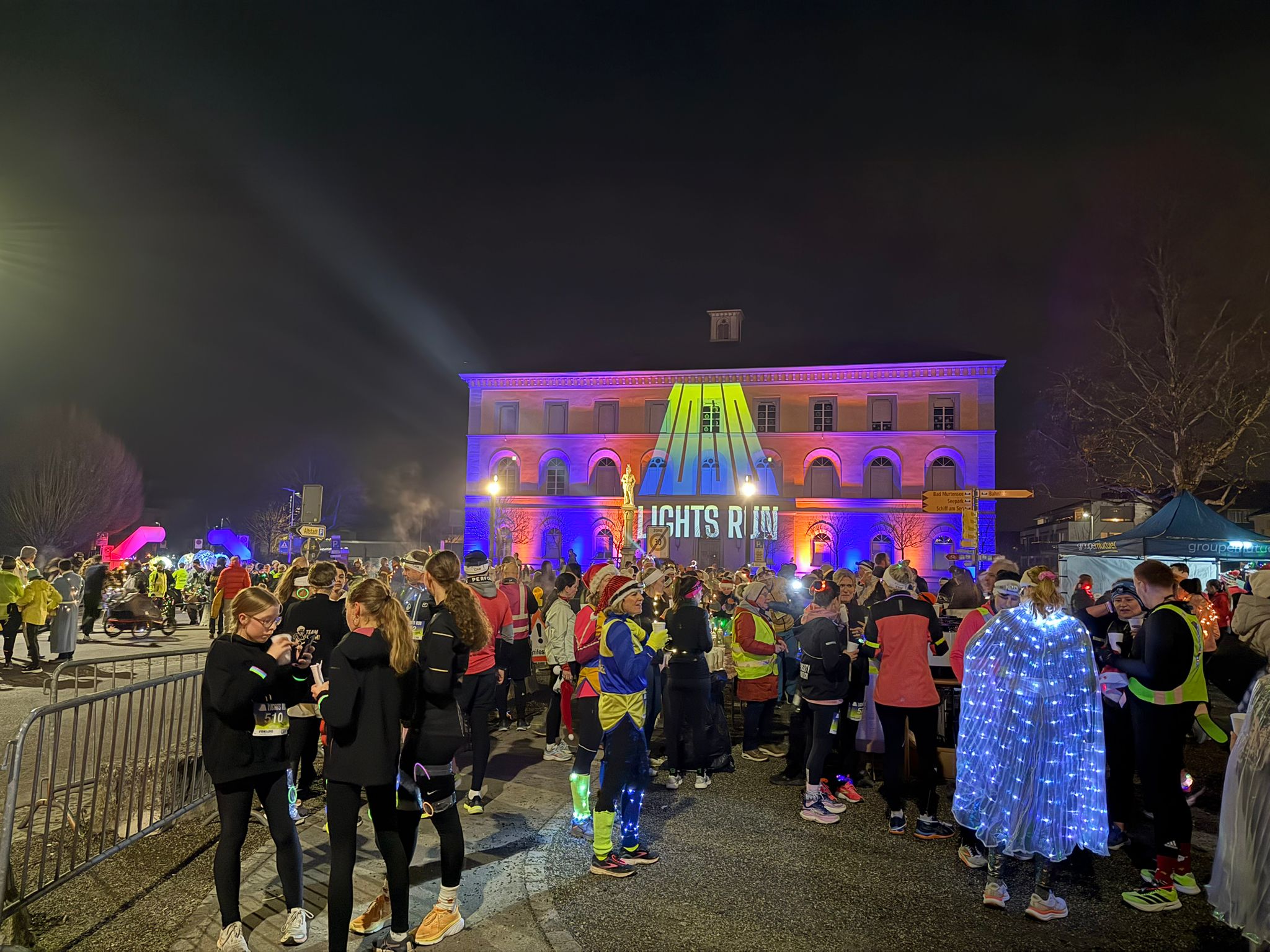 Eintauchen in die Magie des 1000 Lights Run ist am ersten festlichen Lauf im Herzen von Murten vollumfänglich gelungen. Spektakuläre Lichtinstallationen von unserem Lichtkünstler Antonio Pagano, alias Illuminati, umrahmten den Event zusätzlich – die Sportler waren begeistert. Die Rennstrecke leuchtete mit Lichtlein, Feuerschalen und Fackeln erhellten den Weg am Seeufer. Tänzerinnen in glitzernden Kostümen tanzten in Nebelwolken, Installationen an mehreren Hotspots machten das Erlebnis perfekt – ein grossartiger Event für alle Teilnehmer sowie die Zuschauer.