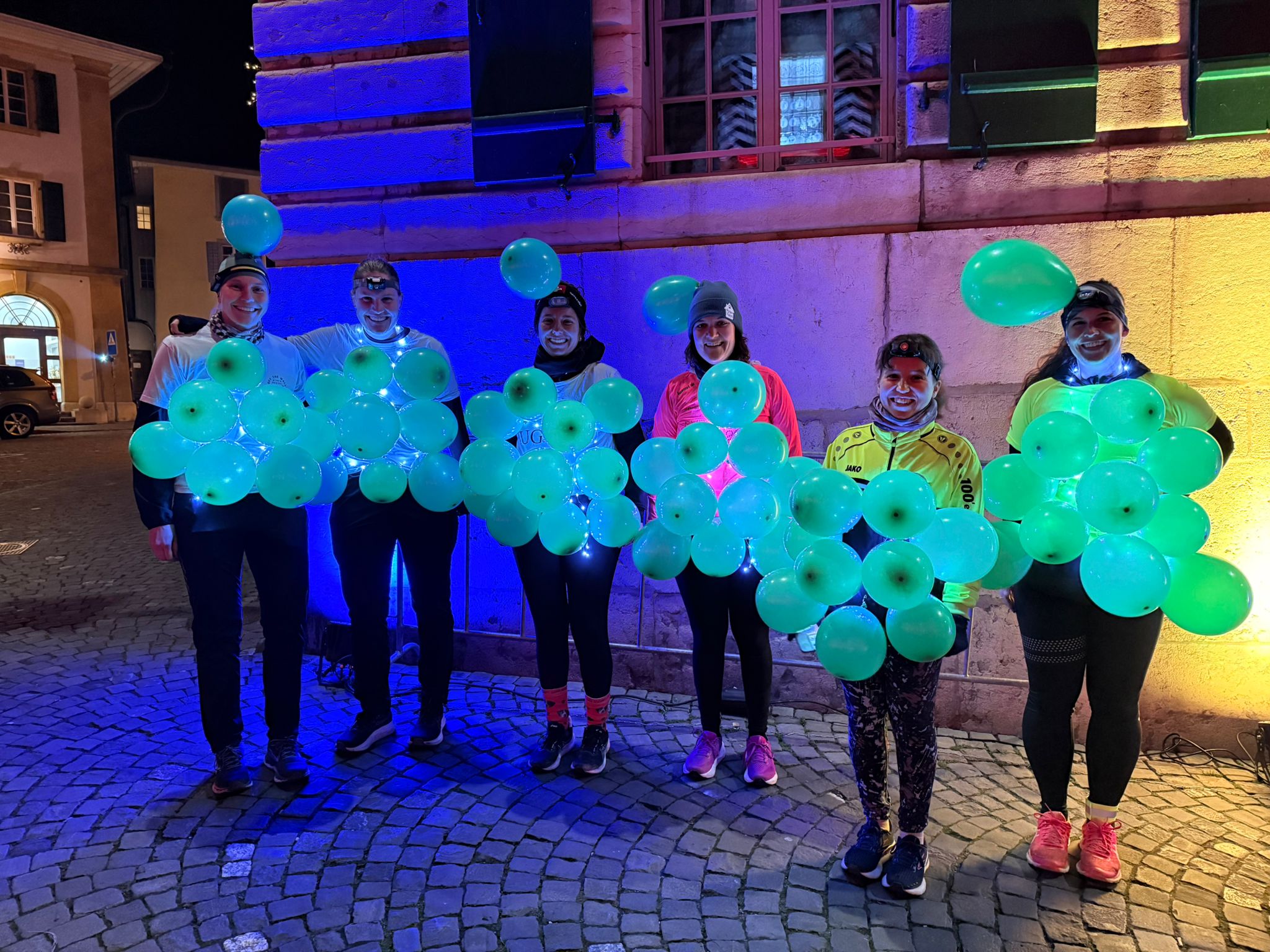 Eine Frauengruppe aus der Westschweiz: «Wir sind Nachtjoggerinnen und springen gern mit aufgesetzten Lampen. Der Rundlauf heute Abend war sehr gut ausgeleuchtet - ein tolles Erlebnis. Die vielen mit Lichtern geschmückten Springerinnen und Springern war en einfach nur schön. Ein phantastischer Abend in der dunkelsten Jahreszeit!»