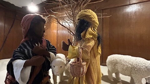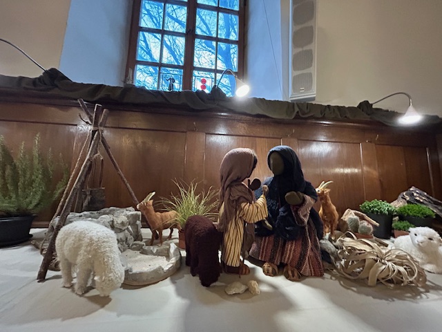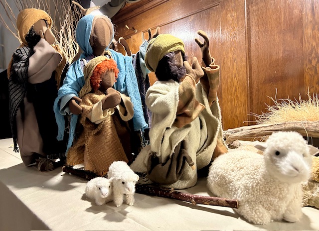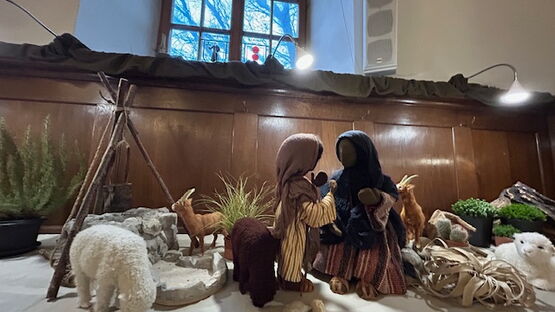 Man hört sie fast tuscheln, die von Uschi von Niederhäuser liebevoll gestalteten Figuren der Weihnachtsgeschichte in der Deutschen Kirche: Die Hirten auf dem Feld erschraken sehr, als der Engel Gabriel in hellem Lichte verkündete, ihr Retter sei geboren worden, in Windeln gewickelt in einer Krippe im Stall.