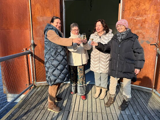 Die Vorstandsmitglieder Cornelia Schmid Hörhager, Karin Leu, Maria Radecke und Karin Ledermann stossen gemeinsam auf ein erfolgreiches Jahr in der LACabane an. Karin Leu erwähnt in ihrer Ansprache, dass im Rahmen der Jahrhundertfeierlichkeiten 550 Jahre Schlacht bei Murten auch der Verein LACabane einen Beitrag leistet. Ein 22-jähriger Ortsansässiger, der sich in seiner Arbeit mit dem Thema Vergänglichkeit auseinandersetzt, wird sein Werk in der rostigen Kapelle präsentieren – ein passendes Thema im Gedenken an die vielen gefallenen Krieger während der Schlacht bei Murten 1476. Die Ausstellung wird sich Mitte Juni bis Mitte Juli präsentieren. Für genauere Angaben besuchen Sie unsere Webseite: www.lacabane-muntelier.ch