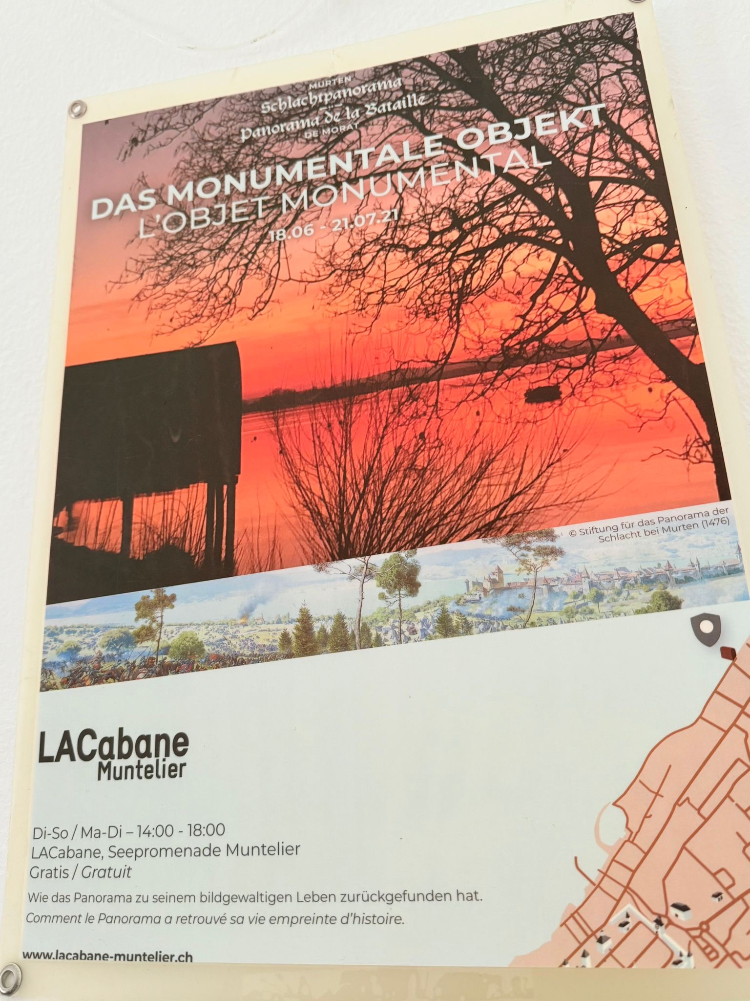 Der Verein LACabane ist sehr aktiv und präsentiert regelmässig Werke von Künstlerinnen und Künstlern. Zahlreiche Plakate vergangener Ausstellungen hängen an den Wänden und geben Einblicke in das Schaffen des lebendigen Vereins. Hier ein paar wenige Exemplare: