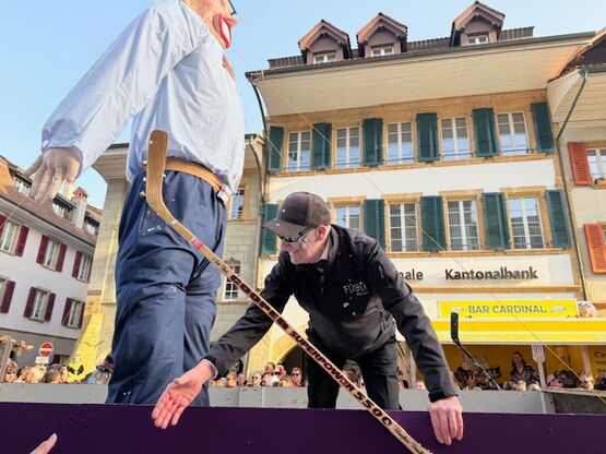 Die Überraschung war schließlich perfekt – und traf niemanden unvorbereiteter als das Opfer selbst: Jürg Flühmann. Er hatte mit der „Ehrung“, dieses Jahr als Füdlibürger herzuhalten, absolut nicht gerechnet. Nach dem ersten Schock überwog jedoch die Freude über die närrische Auszeichnung.
