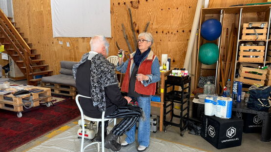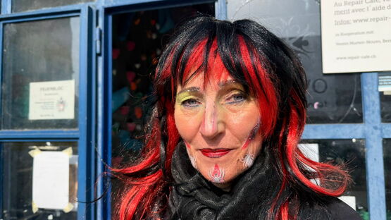 Monika Caduff Kessler verwandelt Gesichter seit 35 Jahren in bunte Geschichten, früher in ihrem Coiffeure Salon an der Hauptgasse, heute im alten Feuerwehrmagazin an der Bernstrasse. Es soll ihr letzter Auftritt mit der Spritzpistole sein.