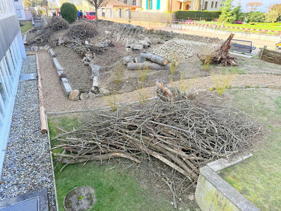 Das Beeindruckende an diesem Projekt: Naturschutz muss nicht teuer sein. Abgesehen von den neuen Jungsträuchern und der Plastikfolie für die Wasserstelle kostete das Material fast nichts. Hier wurde Naturmaterial sinnvoll recycelt. Dass das neue Quartier bei der lokalen Fauna gut ankommt, zeigte sich bereits während der Bauarbeiten. Die „Bauaufsicht“ übernahm die Natur höchstpersönlich: Ein Zaunkönig und ein Rotkehlchen schauten bereits neugierig vorbei, um ihren neuen Lebensraum einer ersten Inspektion zu unterziehen.