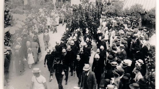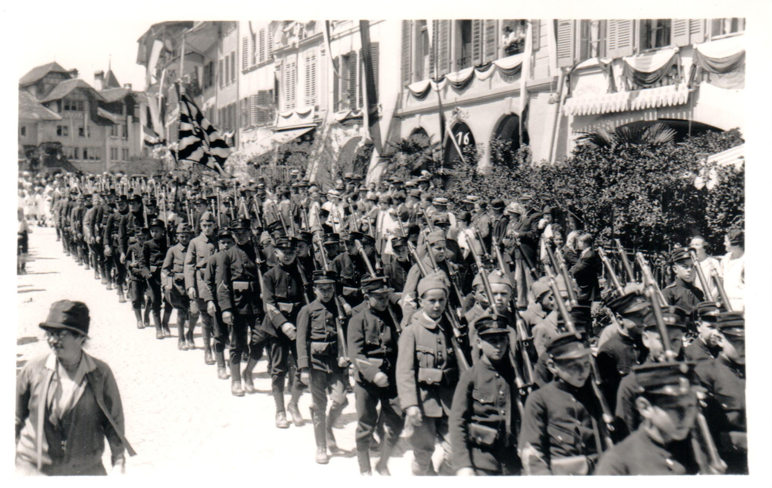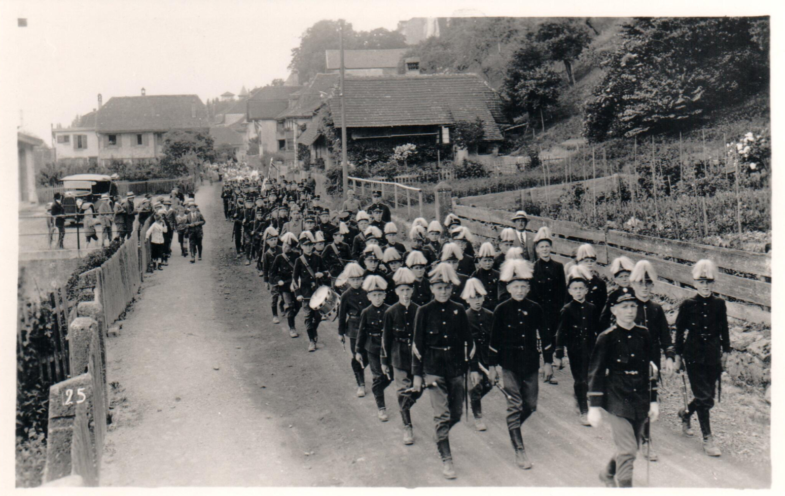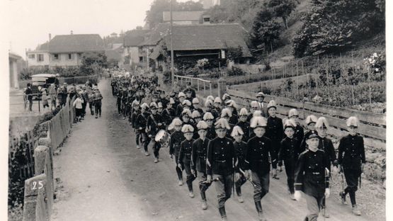 5 / 8BildergalerieDer Umzug 1926 war gemischt, es wurden alte und neue Uniformen getragen. Bis anfangs der 1970er-Jahre gehörten Kadettengewehre zum Erscheinungsbild. -