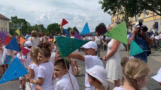 Die Fahnenübergabe vor dem Primarschulhaus