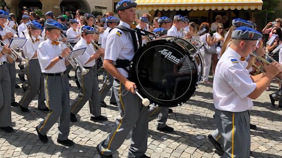 3 / 47BildergalerieDie Kadetten marschieren im Gleichschritt durchs Stedtli. -