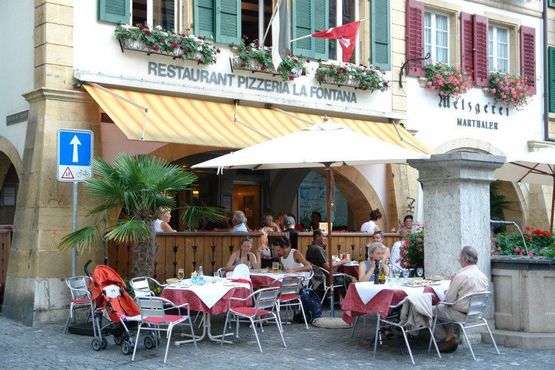 Im Stedtli direkt neben dem Berntor gelegen, bietet das Team des Ristorante La Fontana eine ausgezeichnete italienische Küche. Draussen speist man direkt neben dem unteren Brunnen. Eine Reservation wird empfohlen.