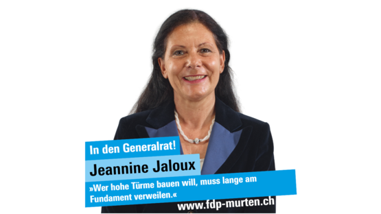 Für den Generalrat positioniert die FDP Murten 37 Kandidierende in verschiedensten Altersklassen und mit sehr vielseitigen Backgrounds. 13 von insgesamt 16 amtierenden Generalratsmitglieder stellen sich für eine weitere Legislatur zur Verfügung. Es sind dies Brigitte Bosch, Thomas Bula, Yannick Gaschen, Stefan Hurni (Lurtigen), Christine Jakob, Jeannine Jaloux-Dumont, Anton Kocher (Jeuss), Liliane Kramer (Büchslen), Urs Kramer, Alex Lüdi (Courlevon), Beat Lüthi, André Stettler (Jeuss) sowie Felix Stoffel.